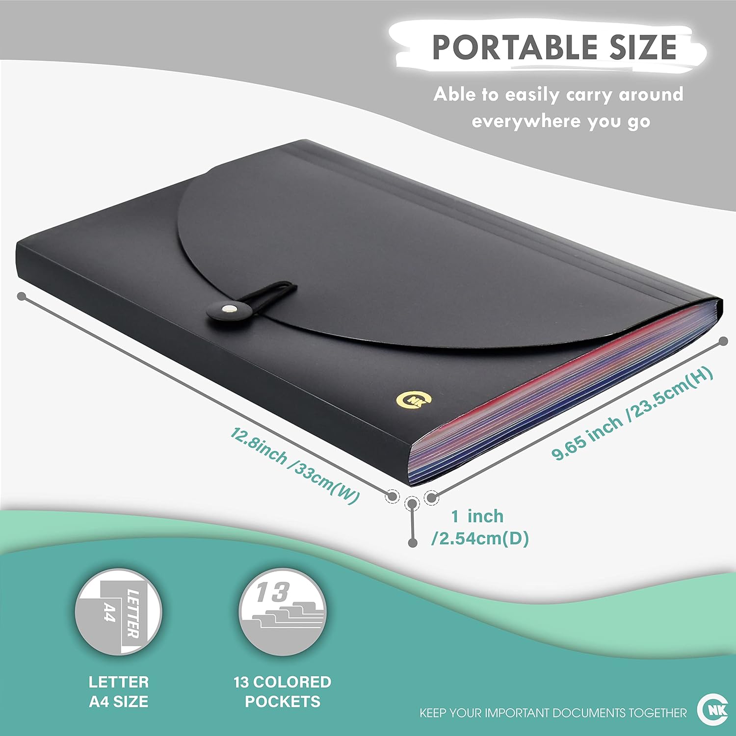 - [High Quality Material] Our 13 Pocket Expanding File Folder is made from quality PP Plastic material, Acid-Free, PVC-Free to ensure durability, water resistant and long lasting cover from every uses.