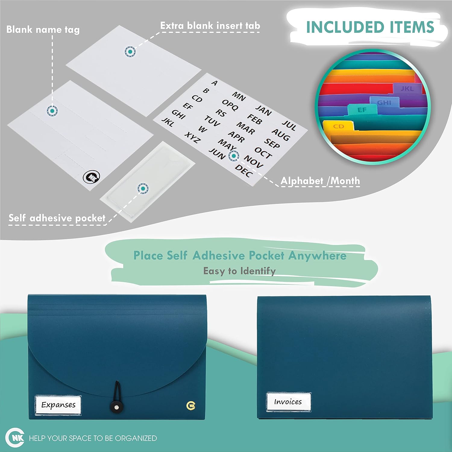 CNK File Folders Organizer with 13 Pockets Accordion Expanding Folder For Documents Receipt Document Paper Pocket Filing Products Accordian Important expandable holder files alphabetical Labels Letter