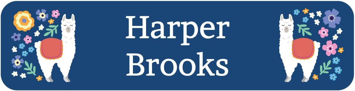 Name Bubbles - Custom Small Rectangle Name Labels for Kids (64 Labels) - Personalized Waterproof Name Stickers for Daycare, Lunch Boxes, Water Bottles, Shoes, School Supplies, & Camp (Llama)