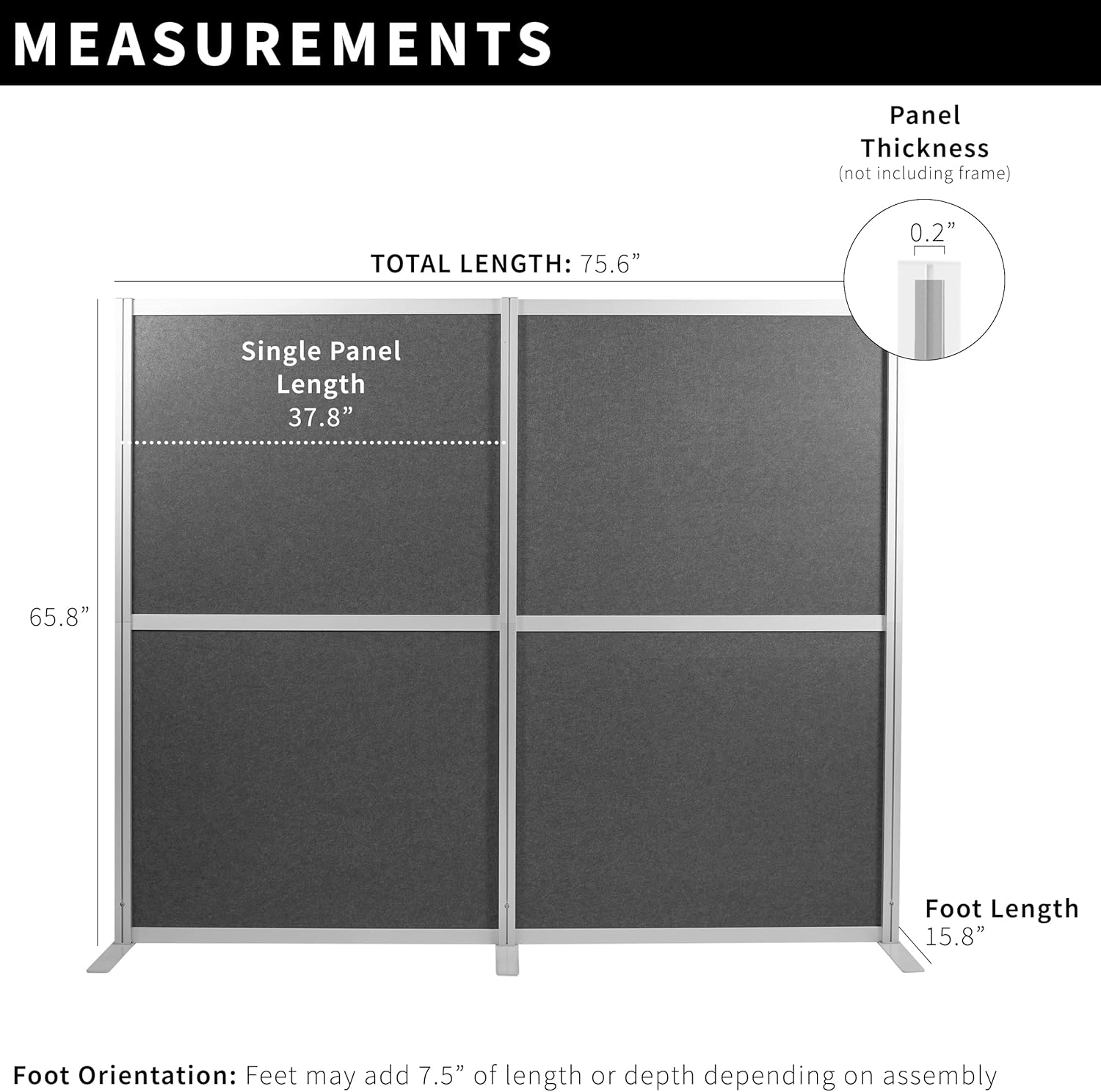 - Freestanding Privacy Panel: Create instant privacy and simple room division with a modern 2 PET panel design (75.6”L x 65.8”H). Aluminum frame and steel feet give solid support (feet add 7.5” of length or depth to overall dimensions depending on assembly)