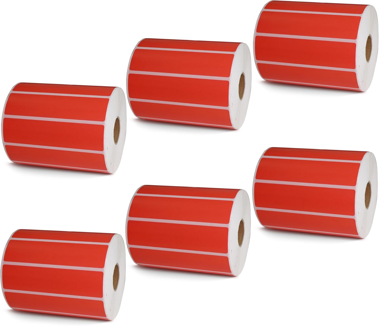 BETCKEY - 4" x 1" Multipurpose Labels Compatible with Zebra & Rollo Label Printer,Premium Adhesive & Perforated[Red, 6 Rolls, 8250 Labels]