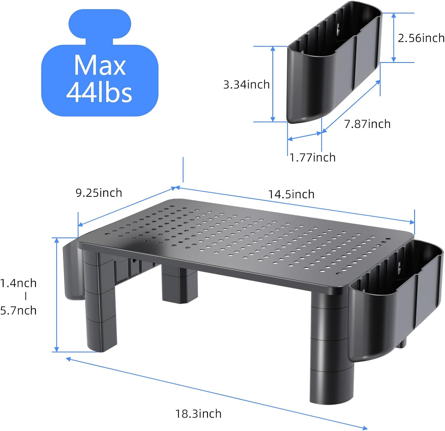 - Scientific Layered Storage Design - Double layer Space Layout: The upper layer lifts the screen to a comfortable viewing angle (increased by about 9.25 inches), and the lower layer shelf has a depth of 5.7 inches, making it easy to store keyboards, stationery, and other miscellaneous items.