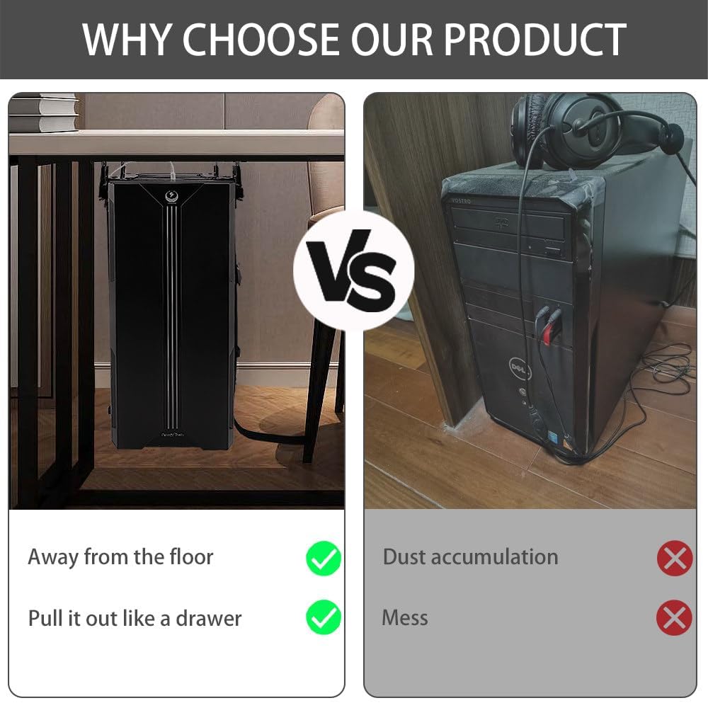 - Easy Installation: Our under desk pc holder comes with includes a complete set of mounting hardware which will assist you have your computer tower mounted to the PC underside of your desk in no time