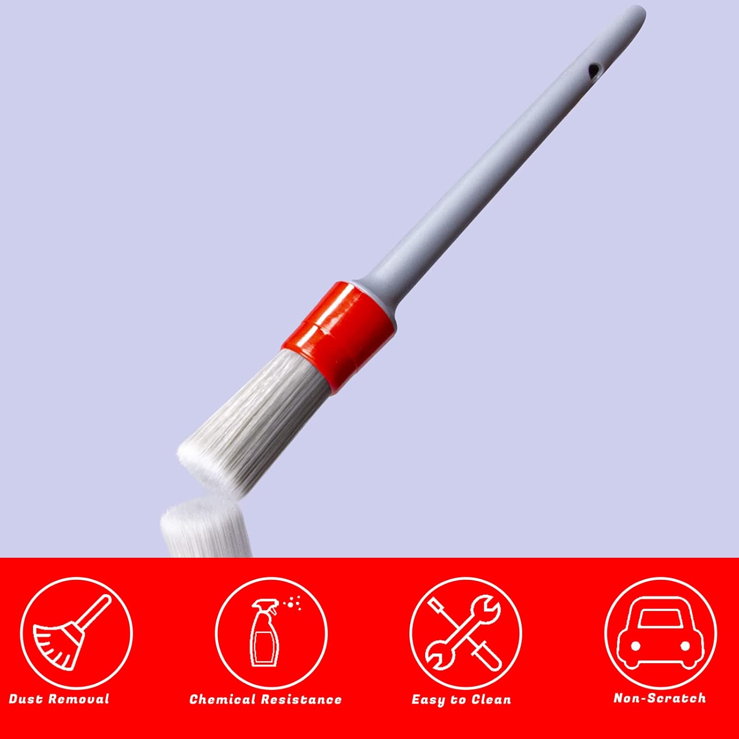 - VARIOUS SIZE -5 Different detail brush sizes, you can choose any one to suit your needs, enough length for easily exploring and reaching into the lug nuts, narrow or tight space.No wash is complete without a set of scratch-less brushes.