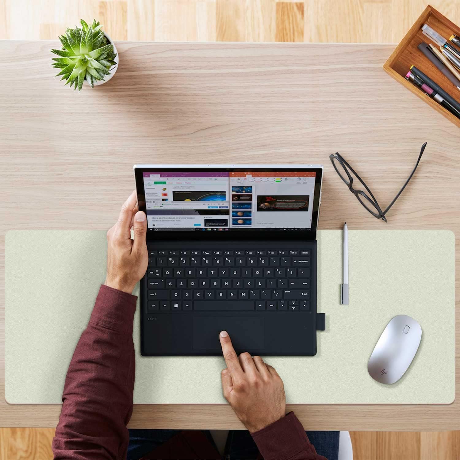 - Dual-Side Design: Our desk pad features the same material in different colors on each side, allowing you to use both. Simply flip it for a fresh look. This pad adds a modern and professional touch to your workspace