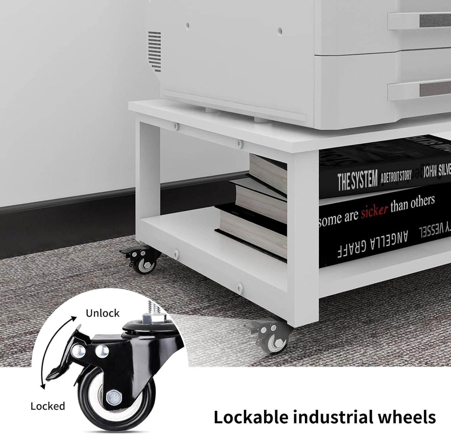 Natwind 2 Tier Laser Printer Stand,23.6''x23.6'' Large Printer Table,Copier Stand with Wheels, Heavy Duty Rolling Printer Cart with Paper Storage Shelf for Home Office (White)