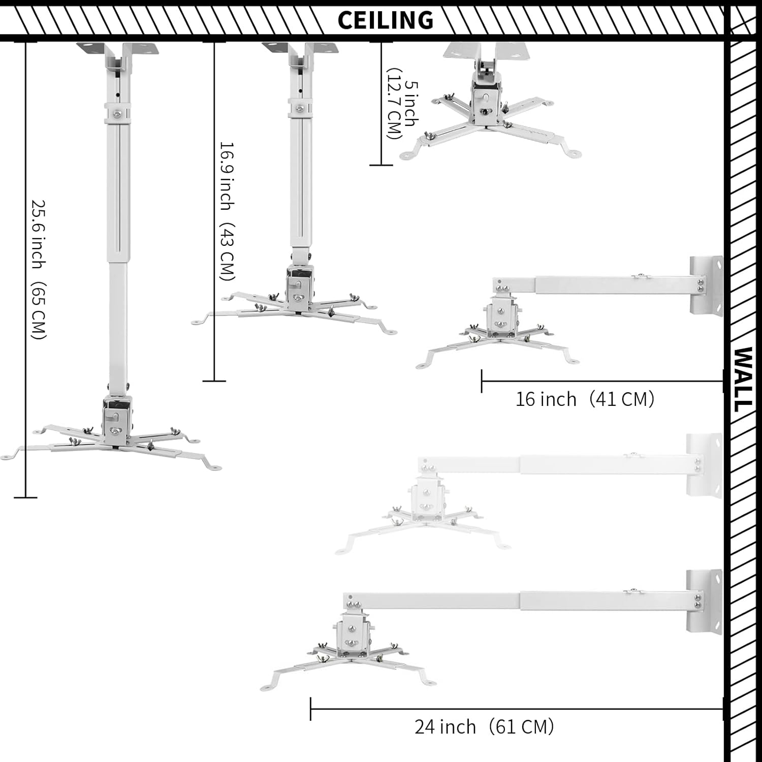- 【Universal Projector Wall Mount Bracket】Newly Designed 3-In-1 retractable projector mounts from ceiling, including Flush Ceiling Installation; Telescoping Arm Ceiling Installation; Wall Installation. Compatible most projectors.