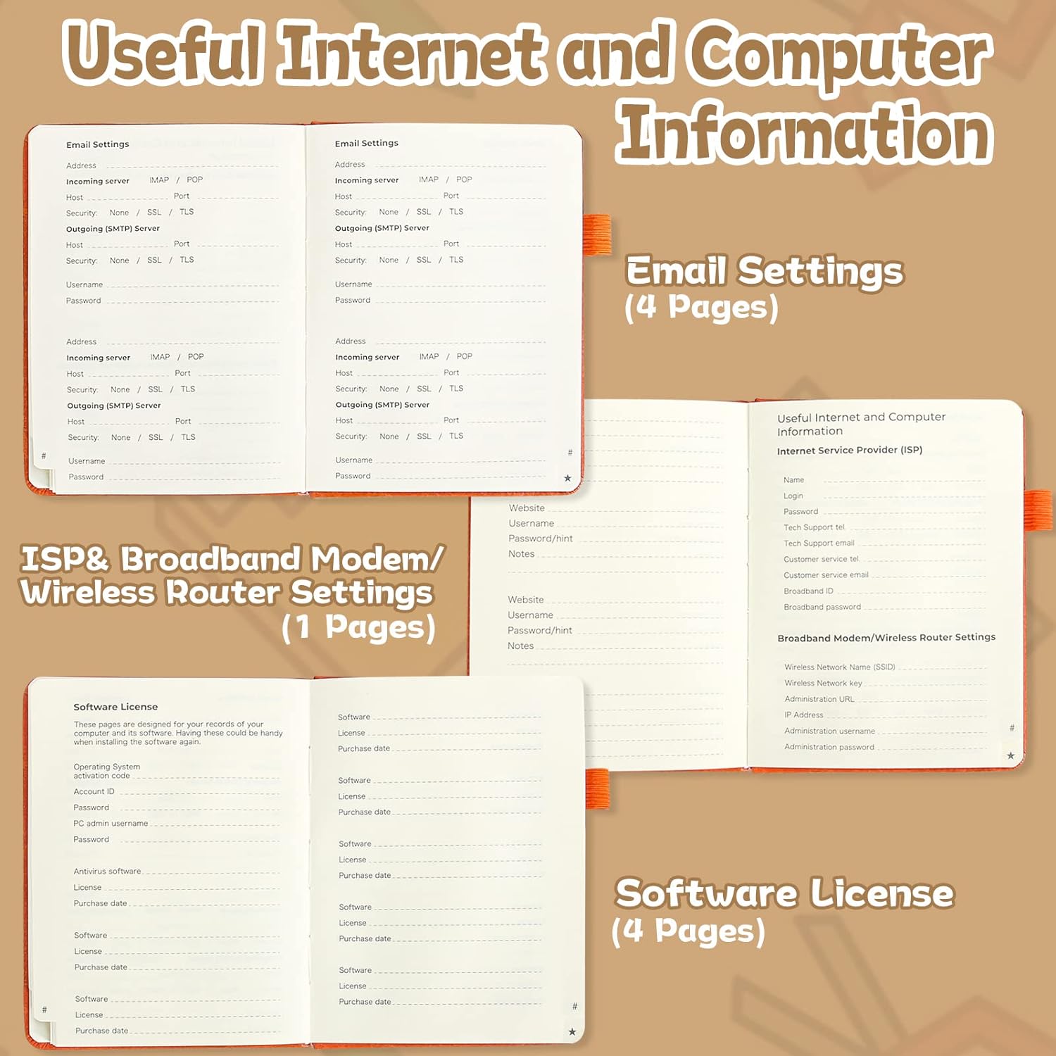 - Convenient Content Design: Password book with A-Z alphabetical tab design you can store passwords alphabetically so that they can be found quickly. It has 4 entries per page, 192 entries in total for your records. In addition, there are 9 pages for records useful Internet and computer information and 4 pages for very important and most visited websites, and 19 blank pages for another content.
