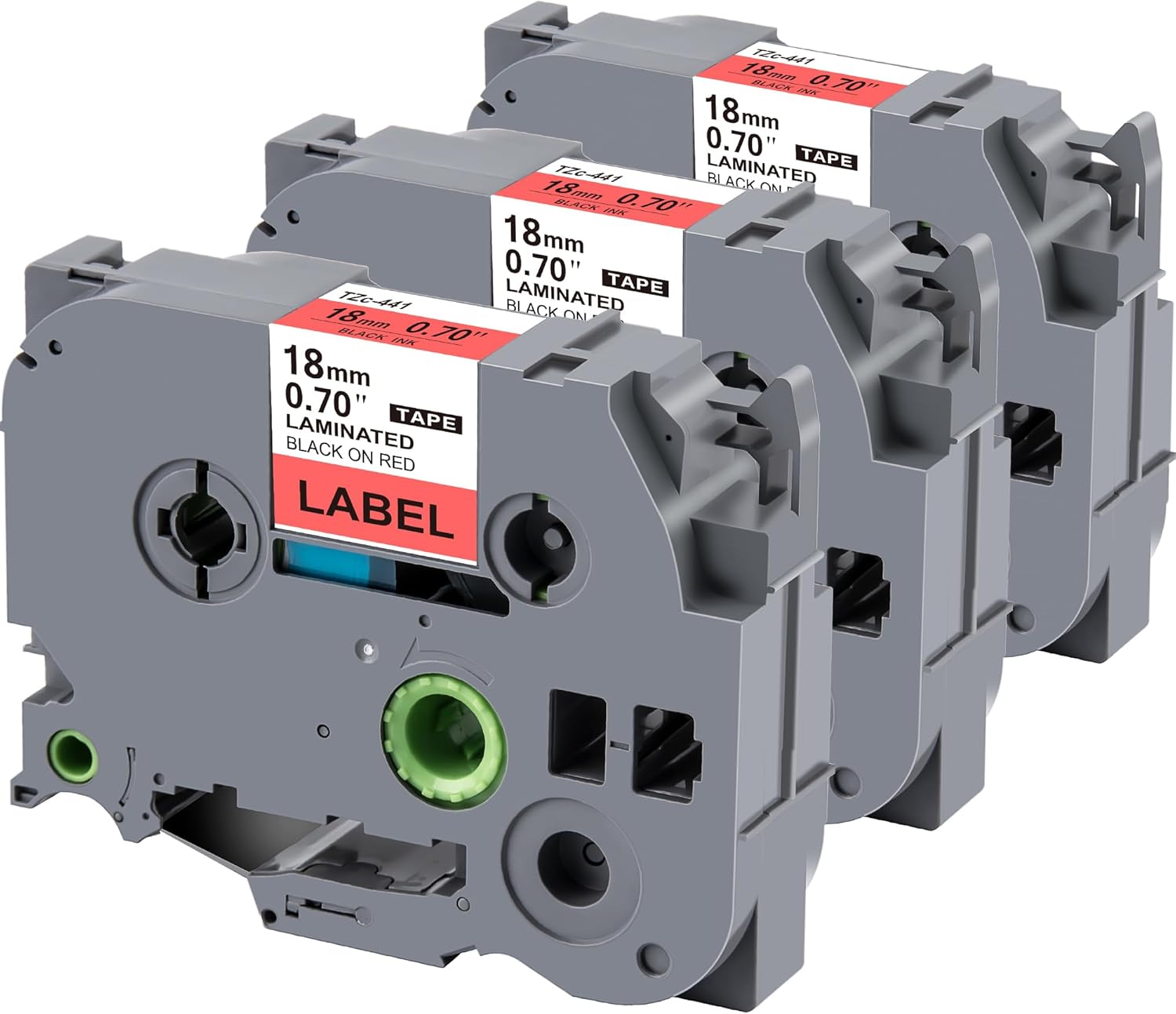 Weemay Compatible 3 Pack TZe-441 Replacement for Brother P-Touch Label Tape 18mm 0.7 Black on Red 3/4 TZe TZ Tape TZ-441 TZ441 TZe441 for PT-D400AD PT-D610BT PT-D600 PT-D410 Printer, 0.7" x 26.2'