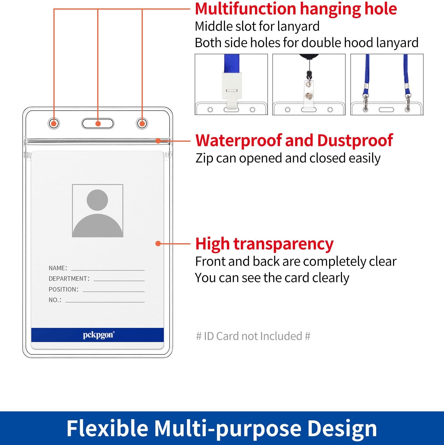 - 【Strong & Flexible Material】The plastic name badge holders is super transparent, light weight, soft, wear-resistant, corrosion-resistant. The badge holder folded and unfolded many time without leaving a trace. The hanging slot/holes will not break, distorted many time.