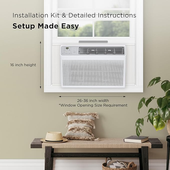 - Setup Made Easy: You don’t have to be an expert technician to set up your new window AC unit with the simple and easy installation kit; A screwdriver is required for setup but not included; Some window frames may require pre-drilled pilot holes (Window Size Requirement: 26-36” x 16”)