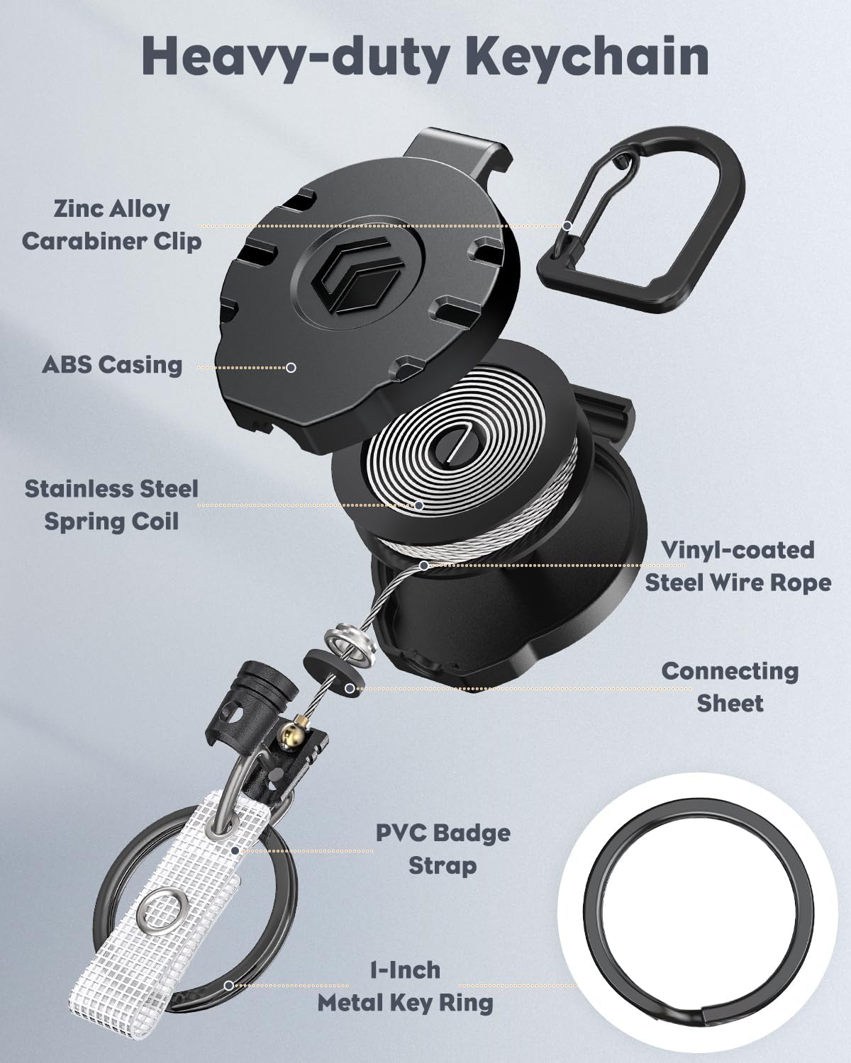 Uniclife Retractable Keychain Heavy Duty Carabiner Badge Holder Tactical ID Badge Reel for up to 8 oz with Stainless Steel Spring Coil 31.5 Inch Steel Wire Rope Retractable Lanyard Clip and Key Ring