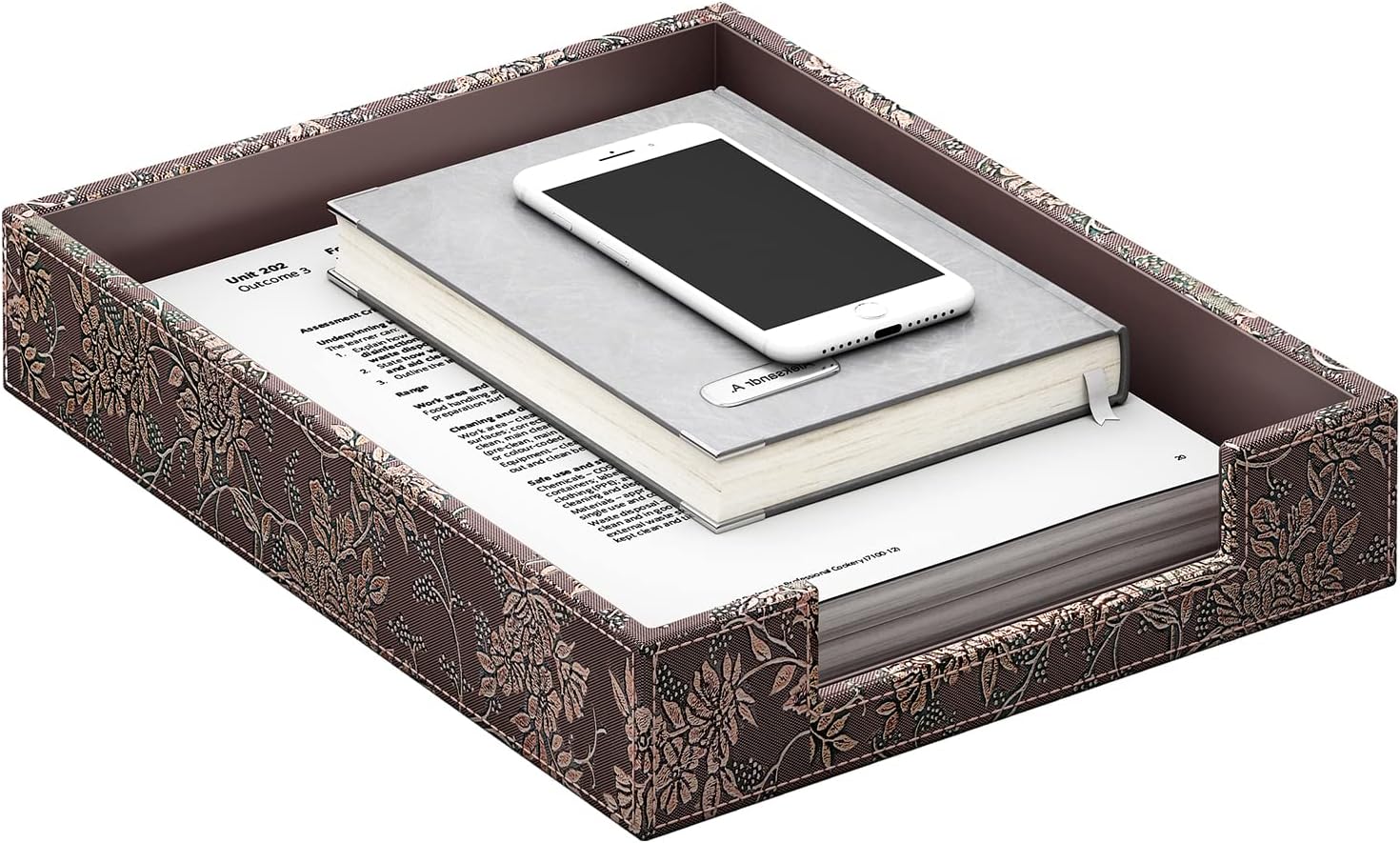 Leather Letter Tray, THIPOTEN Elegant Desk Organizer for Office Supplies, Mail, Paper, File, Magazine, Perfect Office Organization for Desktop(Retro)