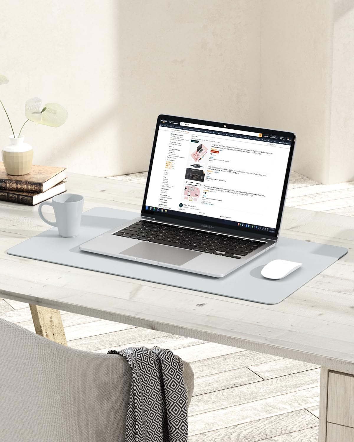 YSAGi Non-Slip Leather Desk Pad, Waterproof Laptop Computer Desk Keyboard Mat, Table Protector Blotter Mat, Large Mouse Pad for Office/Work/Home/Decor(Silver-Grey, 23.6" x 13.7")