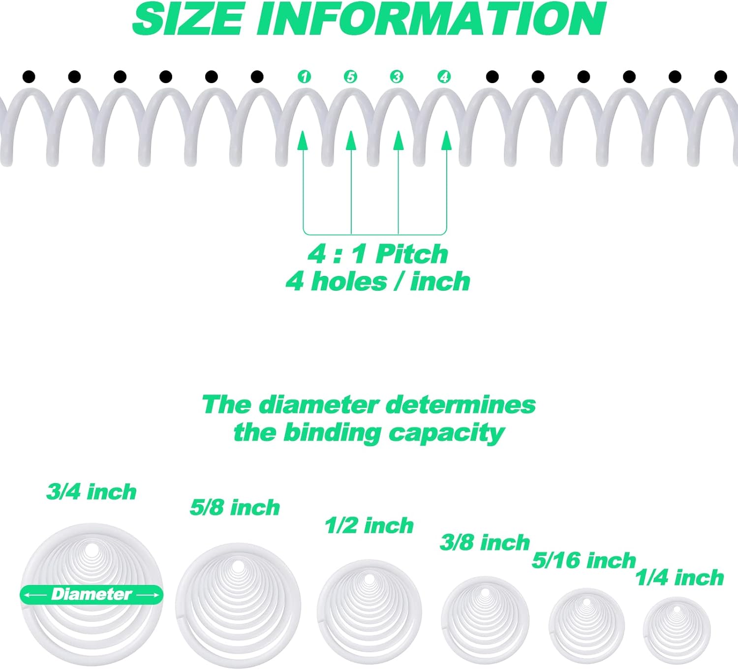 - Multiple Sizes for Your Choices: plastic spiral binding coils contains 6 diverse sizes, namely 1/4", 5/16", 3/8", 1/2", 5/8" and 3/4", to match and beautify most documents or pages, ideal accessories for offices