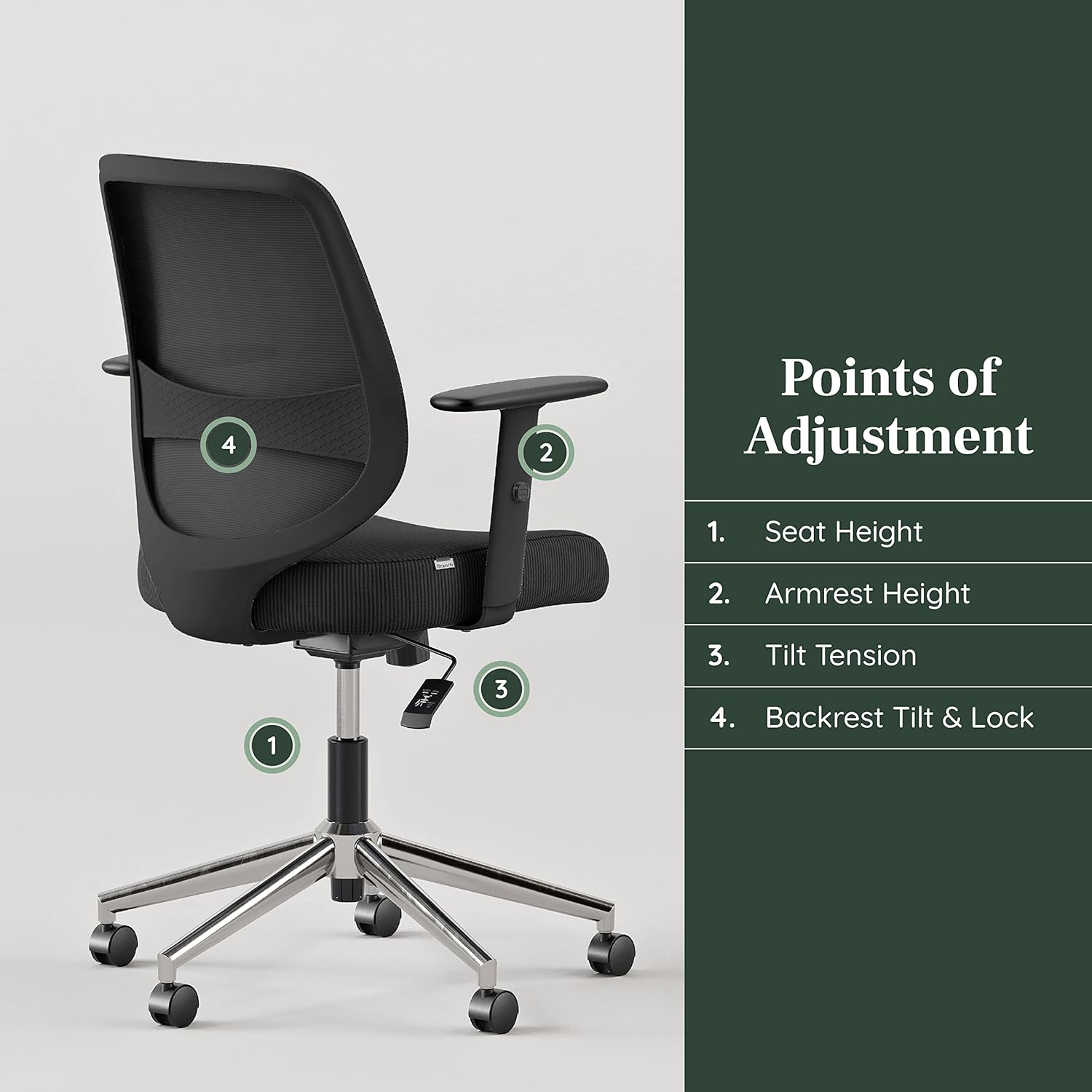 Branch Daily Chair - Computer Office Chair with Swivel, Lumbar Rest, and Adjustable Armrests - Sustainable, Stylish Mesh, & Adjustable Armrests - Comfortable Seating for Improved Posture - Black