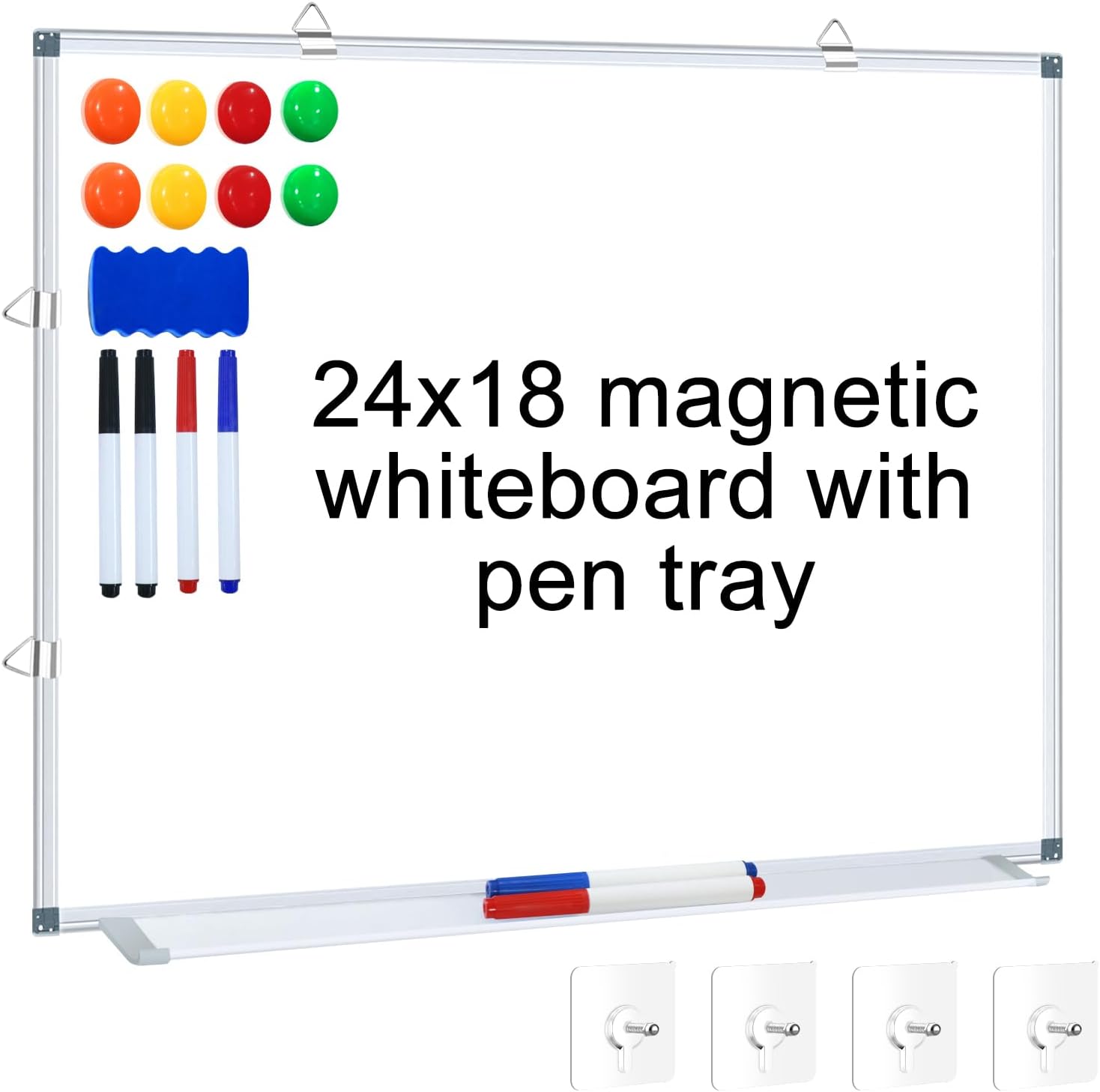 H-Qprobd Magnetic Whiteboard 24" x 18" Dry Erase White Board for Wall, Hanging Mounted Whiteboard with Aluminum Marker Tray