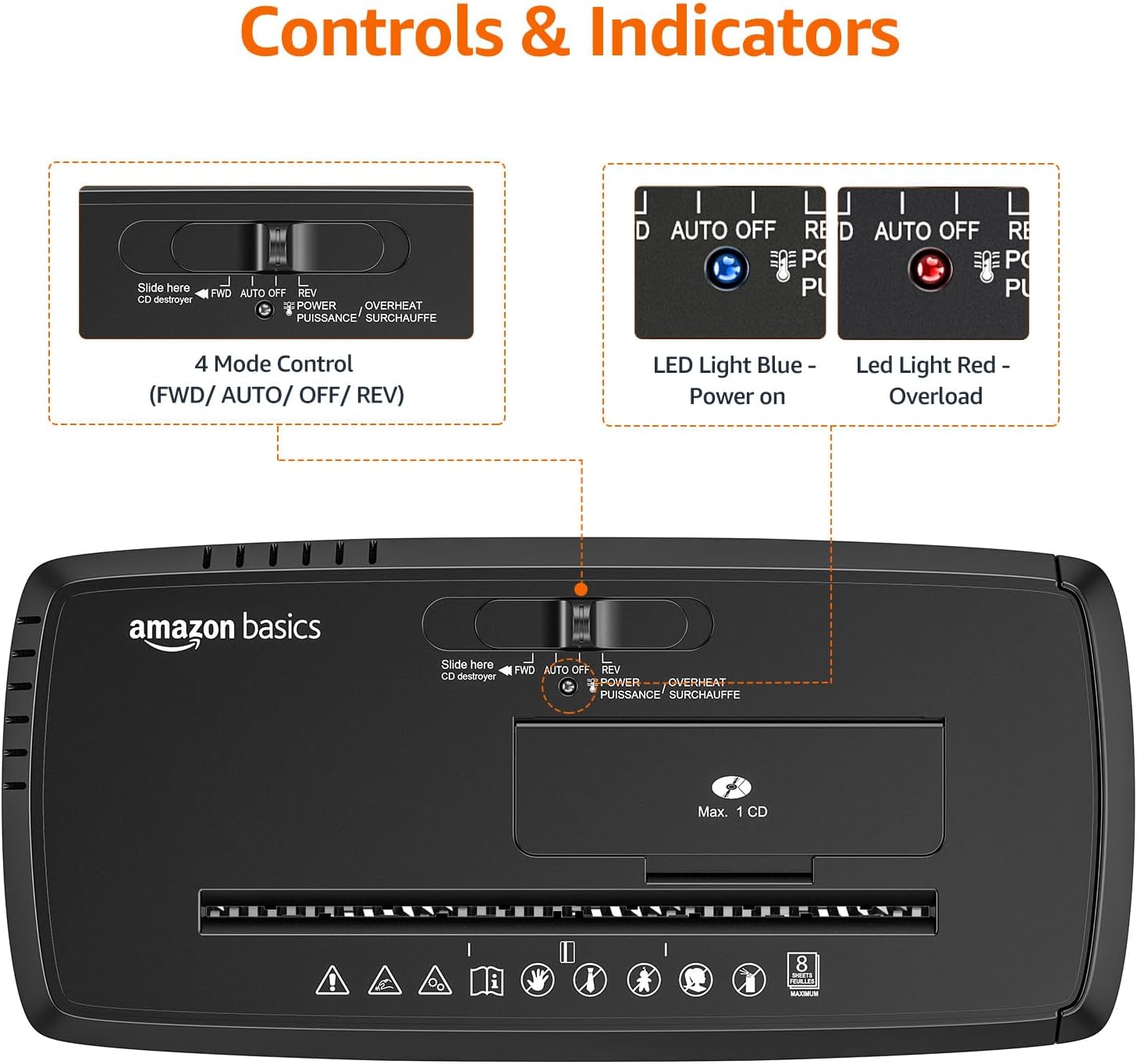 - Amazon Basics quality tests every shredder before shipping; you may see some paper shreds from the testing