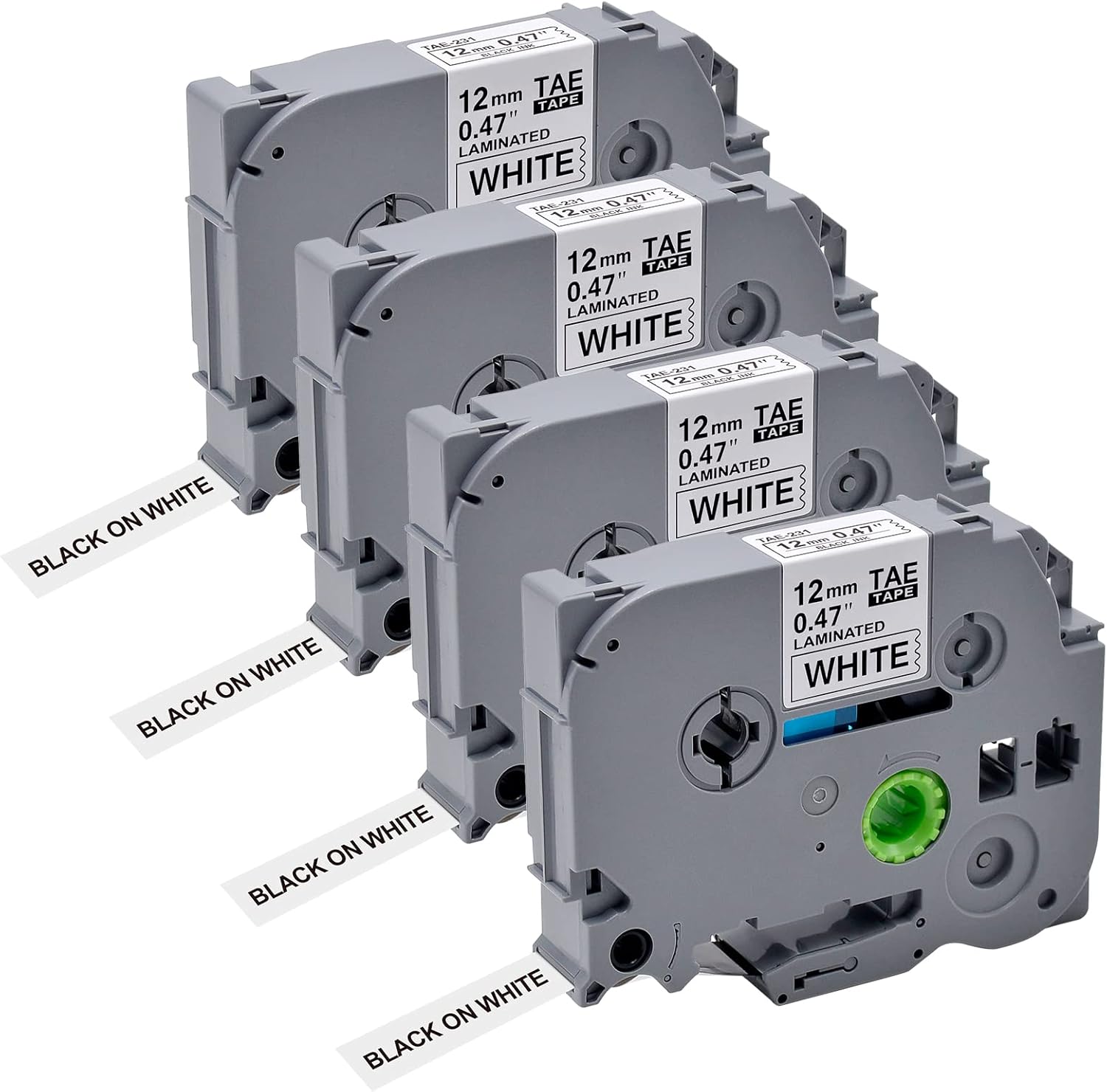 - Product Package Contents: 4 x TZE-231 (12mm*8m) Color: Black on White