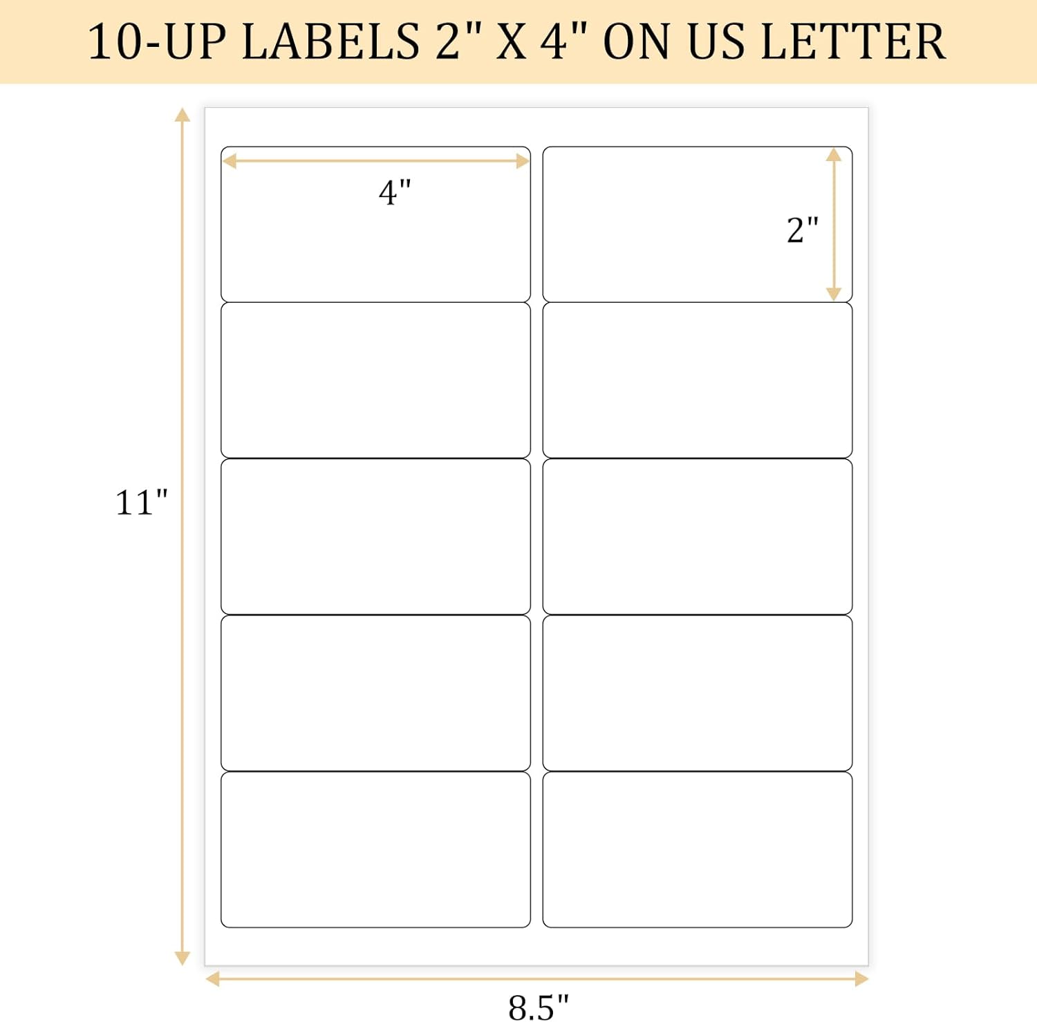 - 【Specification】Label size: 2" x 4", Sheet size: 8-1/2" X 11" (US Letter Size). 10 Labels per sheet, total 30 Sheets = 300 Labels