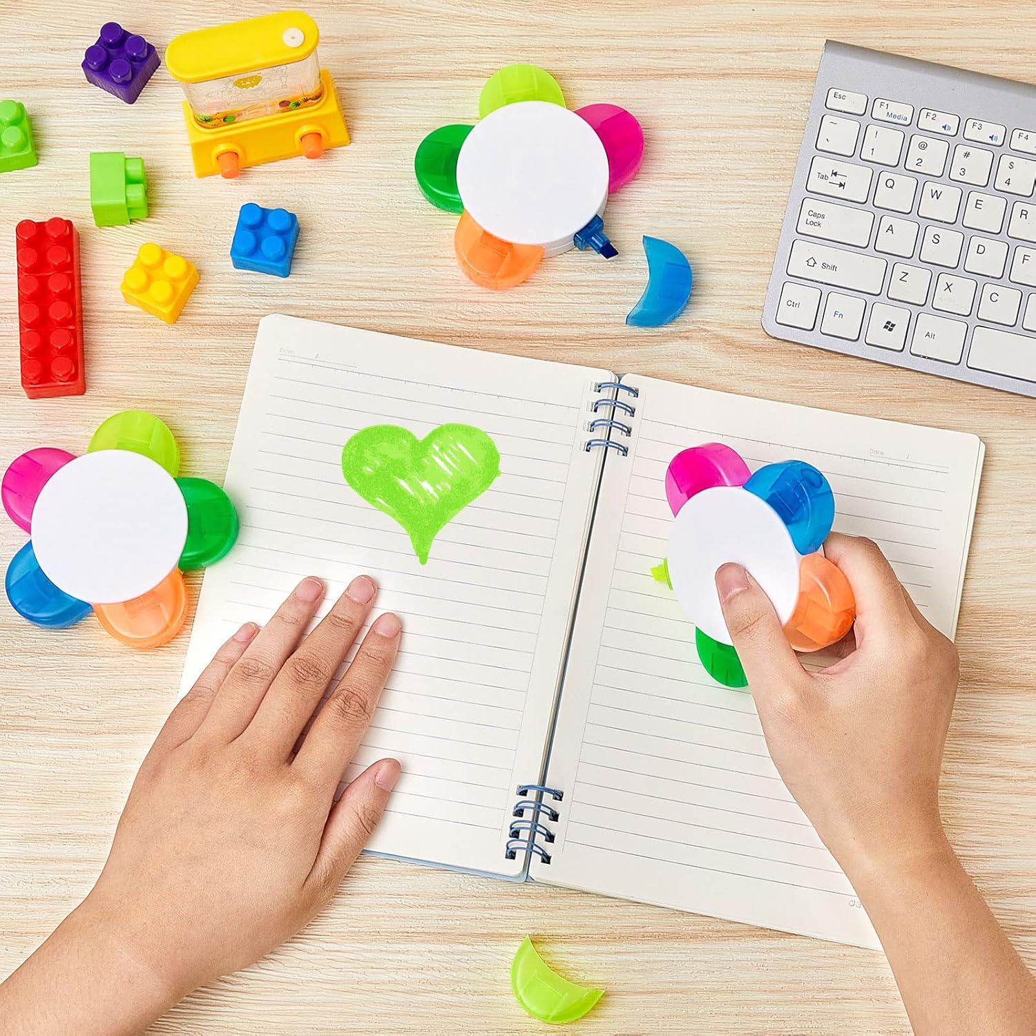 - Package includes: you will receive 5-in-1 petals highlighters in a delivery bag, coming with 5 assorted eye pleasing fluorescent rainbow colors, including pink, orange, yellow, green and blue; Palm sized and light weighted, which can be easily fitted into school bag's pocket or children pencil case