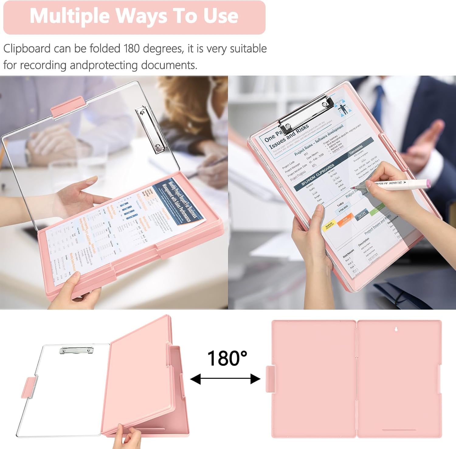 - All-In-One Storage Clipboards: Dual-Layer design ensure roomy space for various needs of storage.You can keep frequently used documents on the top compartment. A second lower compartment is deep enough to store more than 300 sheets. Separate pen/pencil case for pens, markers, and other small items