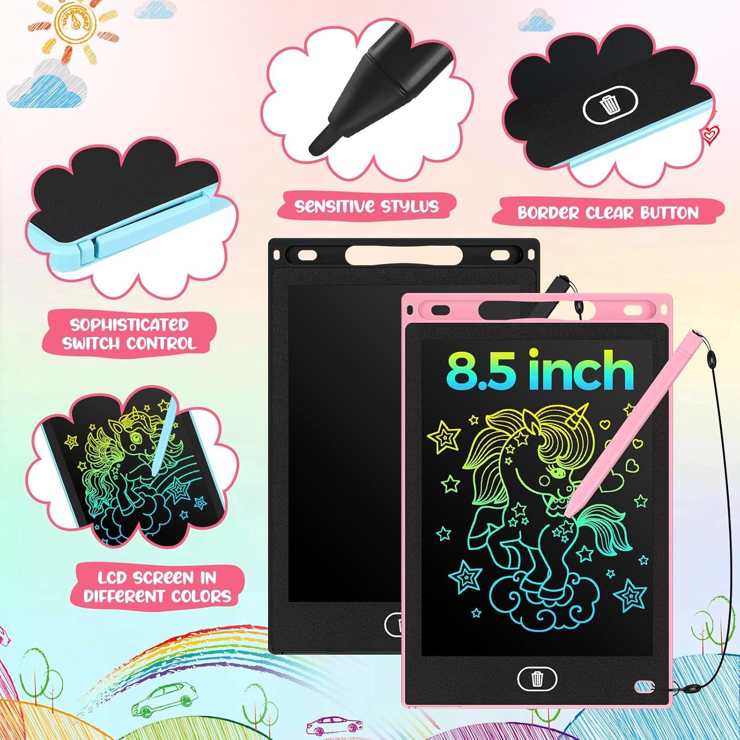 Tinlade 12 Pack LCD Writing Drawing Tablets 8.5 Inch Bulk Colorful Doodle Board Erasable Electronic Painting Drawing Pads Learning Toy Gifts for Kids Christmas School(Pink, Light Blue, White, Black)