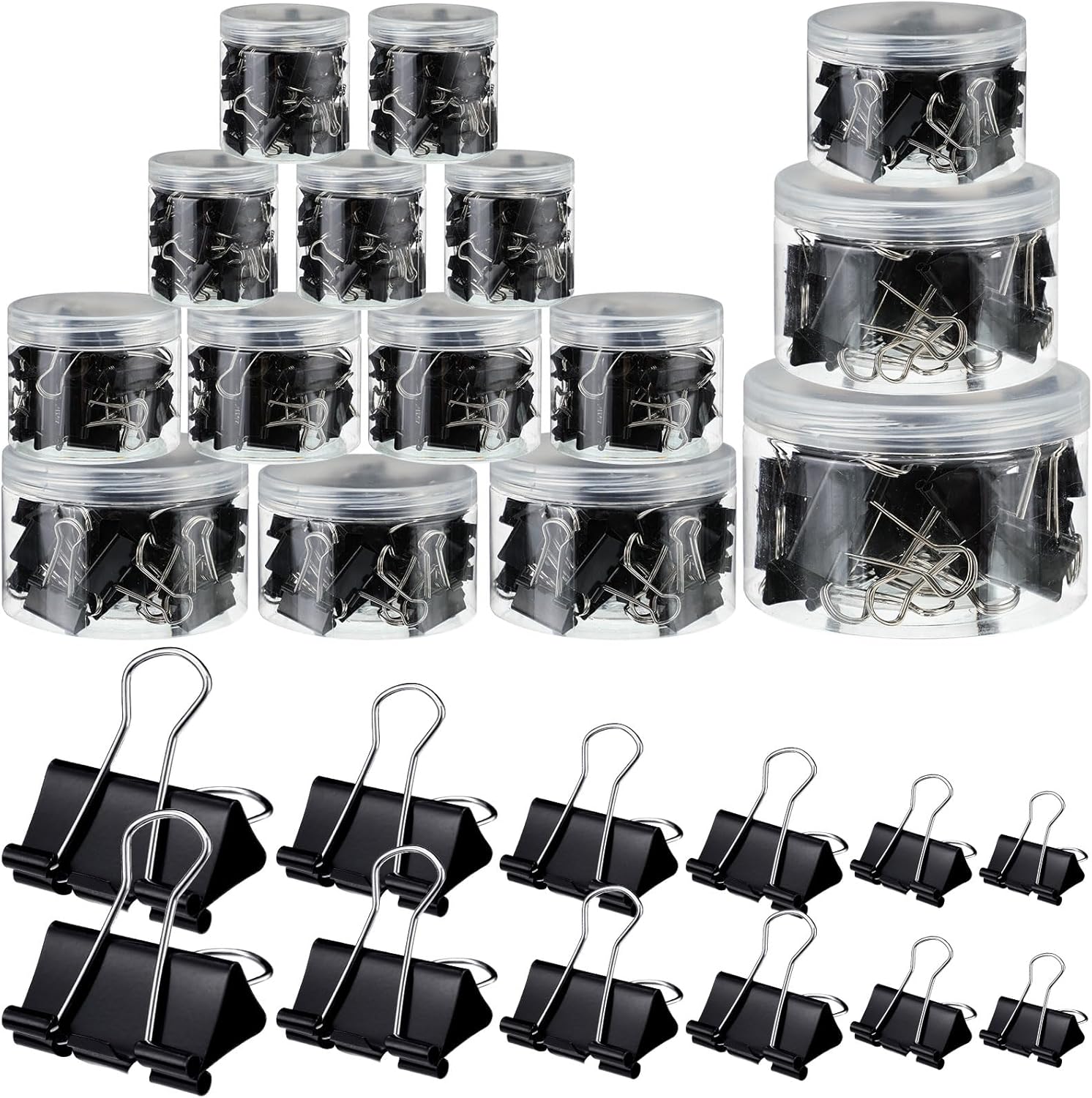 - Ample in Quantity: you will receive a total of 640 pieces of binder clips in 6 different sizes, a total of 15 boxes; There are 5 boxes (300 pieces) of approx. 0.59 inches/ 15 mm, 4 boxes (160 pieces) of approx. 0.75 inches/ 19 mm, 2 boxes (96 pieces) of approx. 0.98 inches/ 25 mm, 2 boxes (48 pieces) of approx. 1.26 inches/ 32 mm, a box (24 pieces) of approx. 1.61 inches/ 41 mm and a box (12 pieces) of approx. 2.01 inches/ 51 mm; Sufficient quantities and various sizes can meet your daily needs