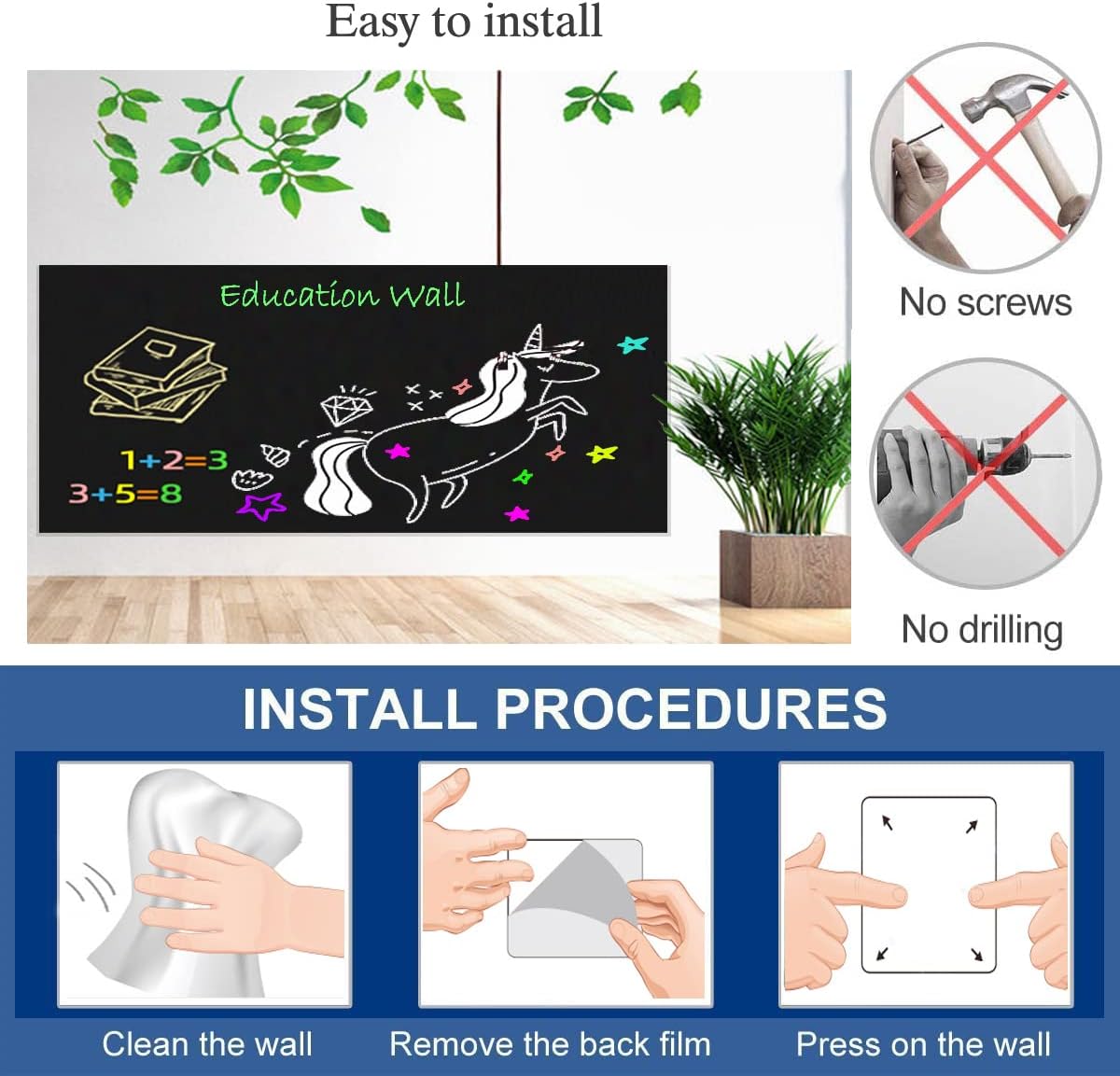 - 【Magnetic Self-Adhesive Chalkboard Paper】 0.6mm thick, 5 times thicker than traditional blackboard wallpaper, with a more solid texture. Ready to use with a simple peel-and-stick, adheres to walls easily without bubbles, zero difficulty in operation .Can quickly turn any smooth, non-textured surface into a magnetic receptive board