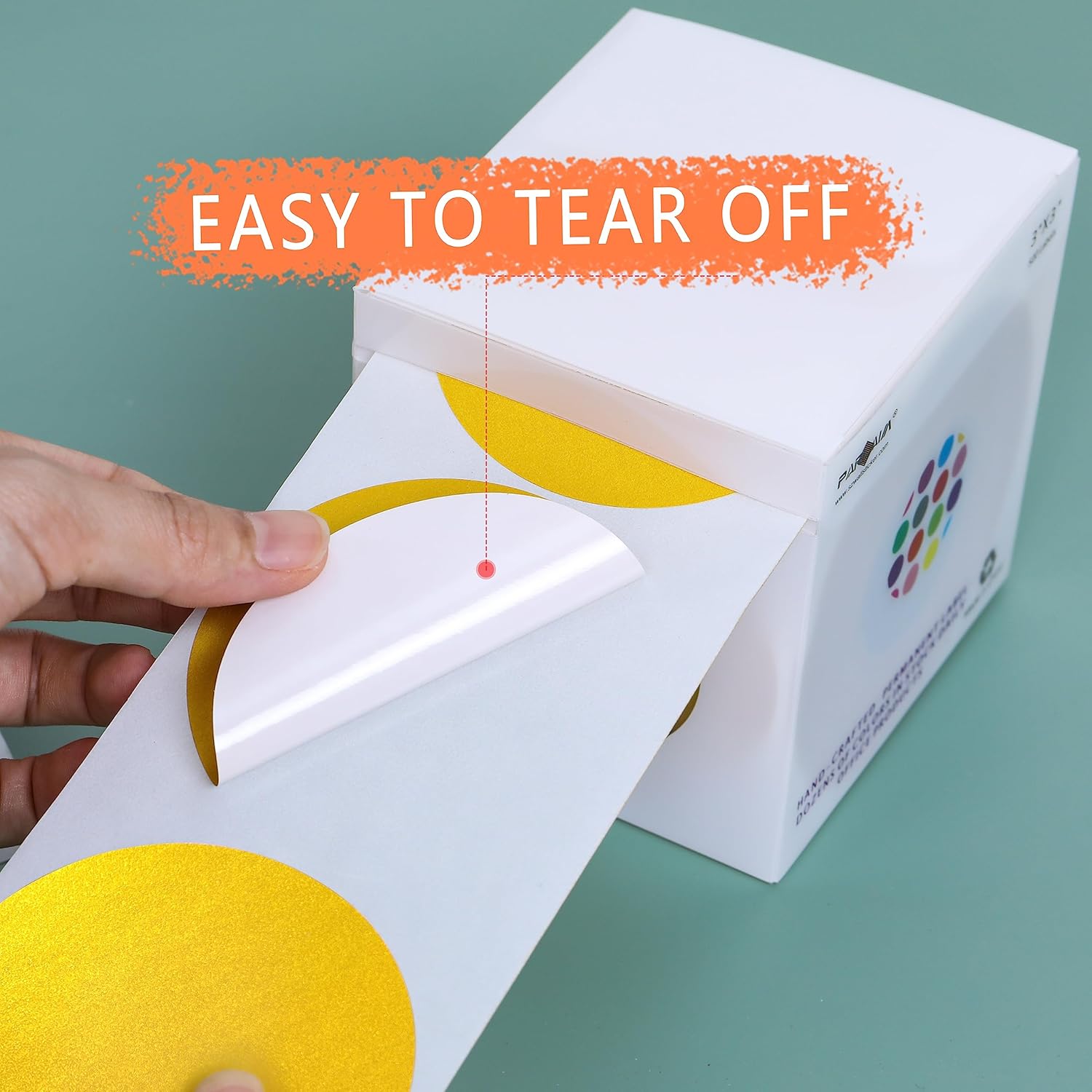 PARLAIM 3 Inch Round Color-Code Dot Stickers, 500PCS Inventory Labels Color Code Stickers Dispenser Box,Gold Circle Sticker Labels for Inventory &Family School Storage Bins Label (Gold)