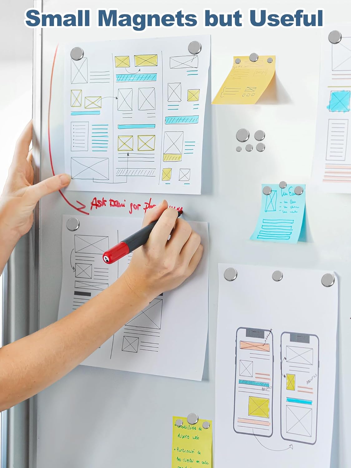 - Useful Design - 100 Pcs & 5 Sizes (Diameter: 15/12/10/8/6 mm, thickness: 2.3 mm), each magnet is able to hold at least 15pcs sticky notes. You don't have to worry it's not able to fixate the paper.