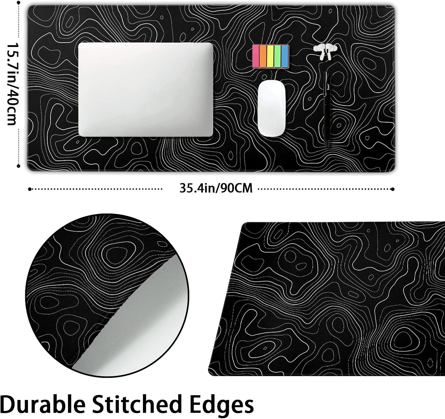 - ★【35.4x15.7 inches Large Mouse Pad】:The topographic mouse pad on the top of desks is large enough to fit your mouse, keyboard,and other items,offering plenty of room for gaming,office work,and daily use while protecting your desk.it is a good desk accessories & workspace organizers.
