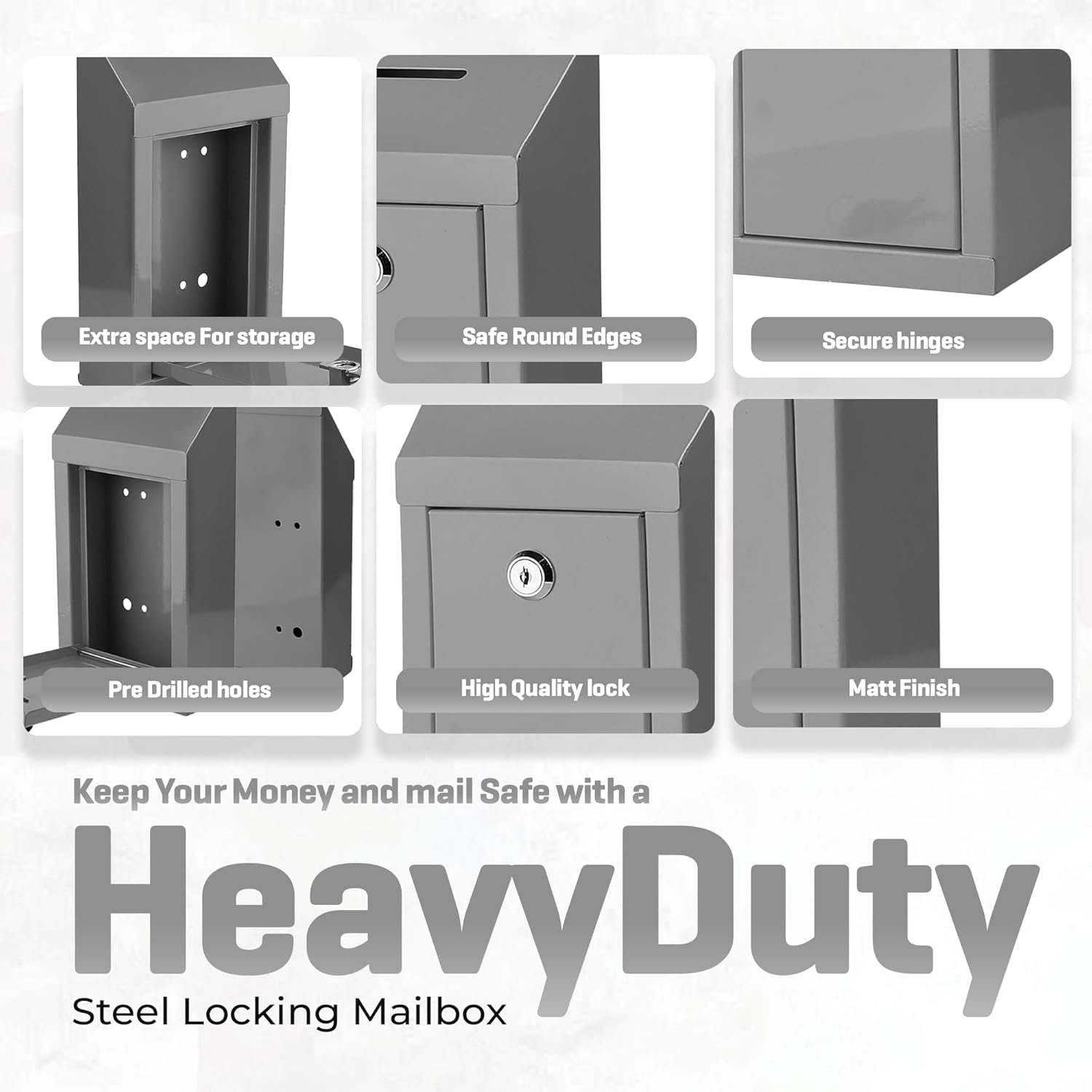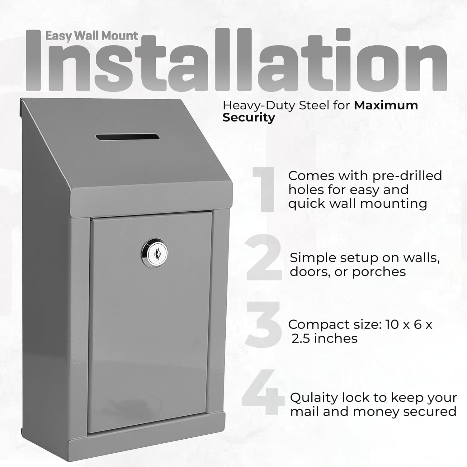Metal Donation Box-Suggestion Box with Slot and lock-Cash Lock box for Money-Secure Drop Box-Comment and ballot voting box-comes with pre-drilled holes for easy wall mounting 10 X 6 X 2.5"(Grey)