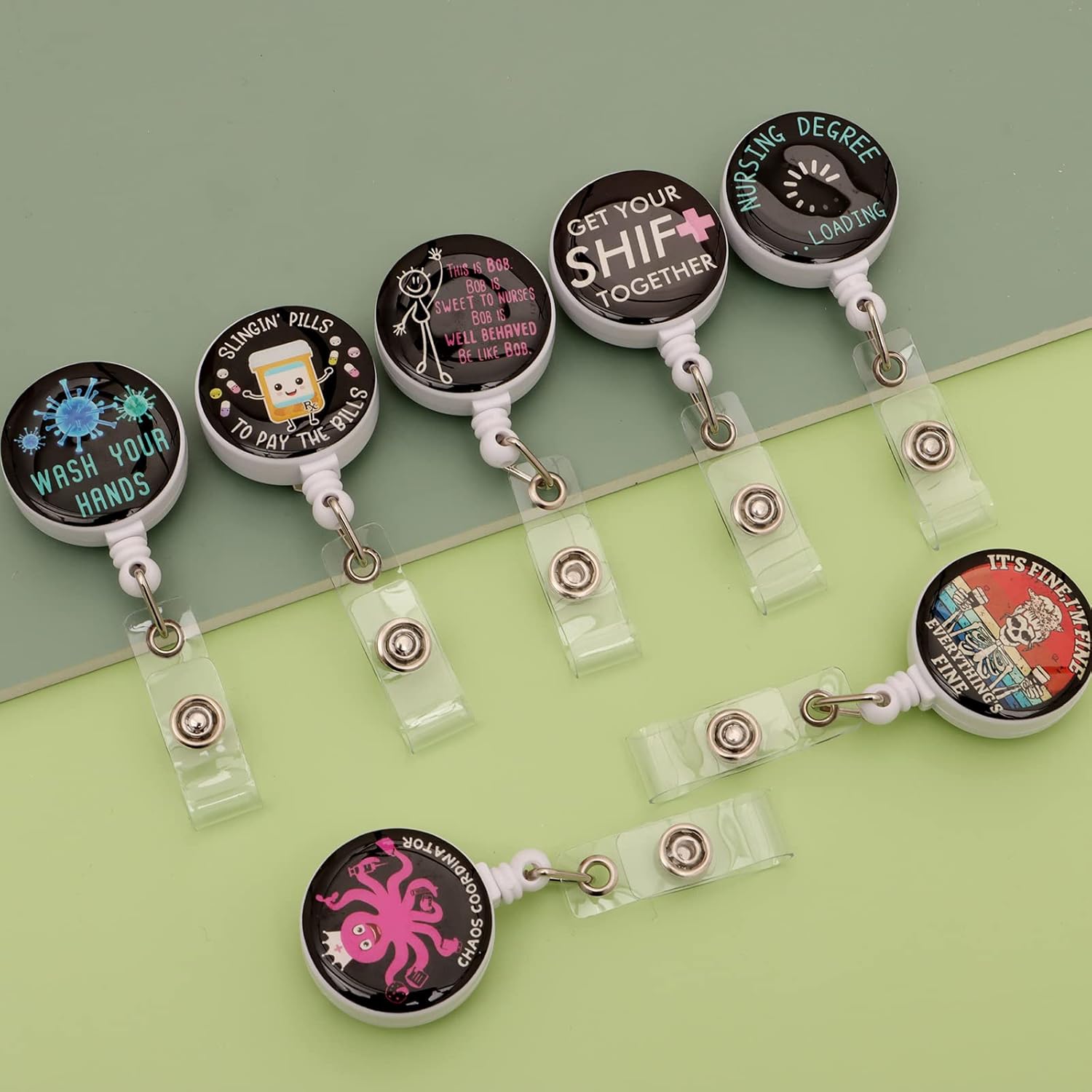 15pcs Nursing Student Must Haves Badge Reels Retractable Badge Holders,Id Badge Holder Retractable Clip,Funny Badge Reel Cute Badge Reel Retractable Lanyards for Id Badges,Nurse Accessories for Work