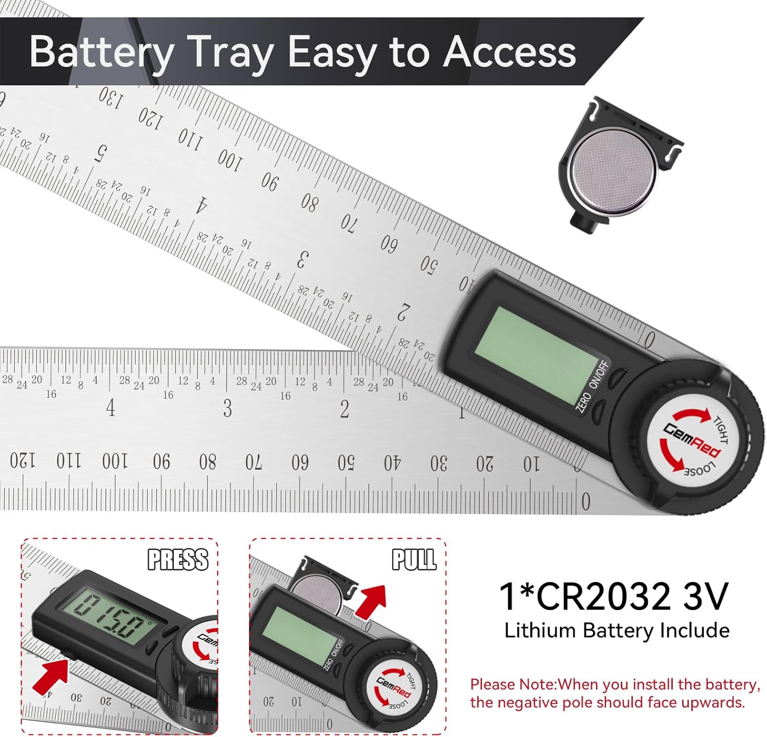 - Patented measuring technology】Ruler and protractor combination for easy measuring inside and outside angles. 【Digital Display】Easy to read.