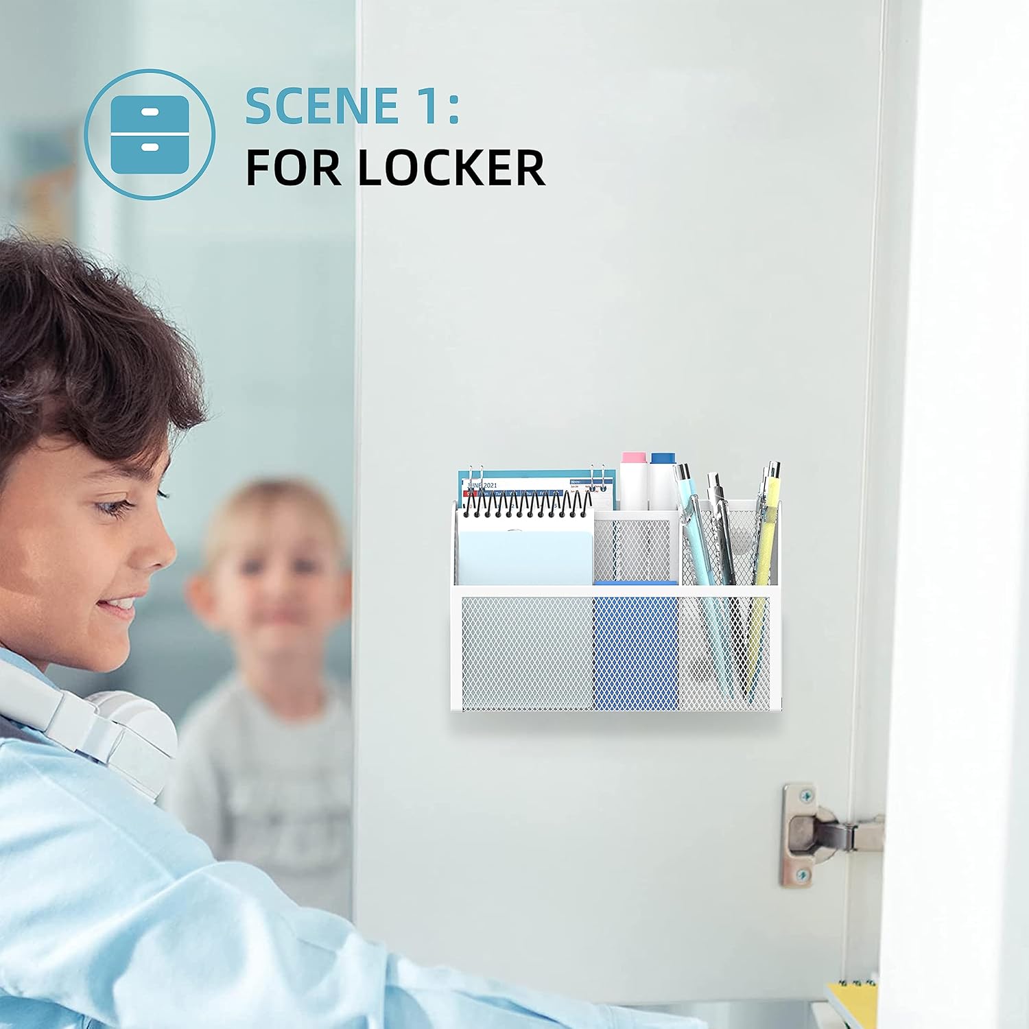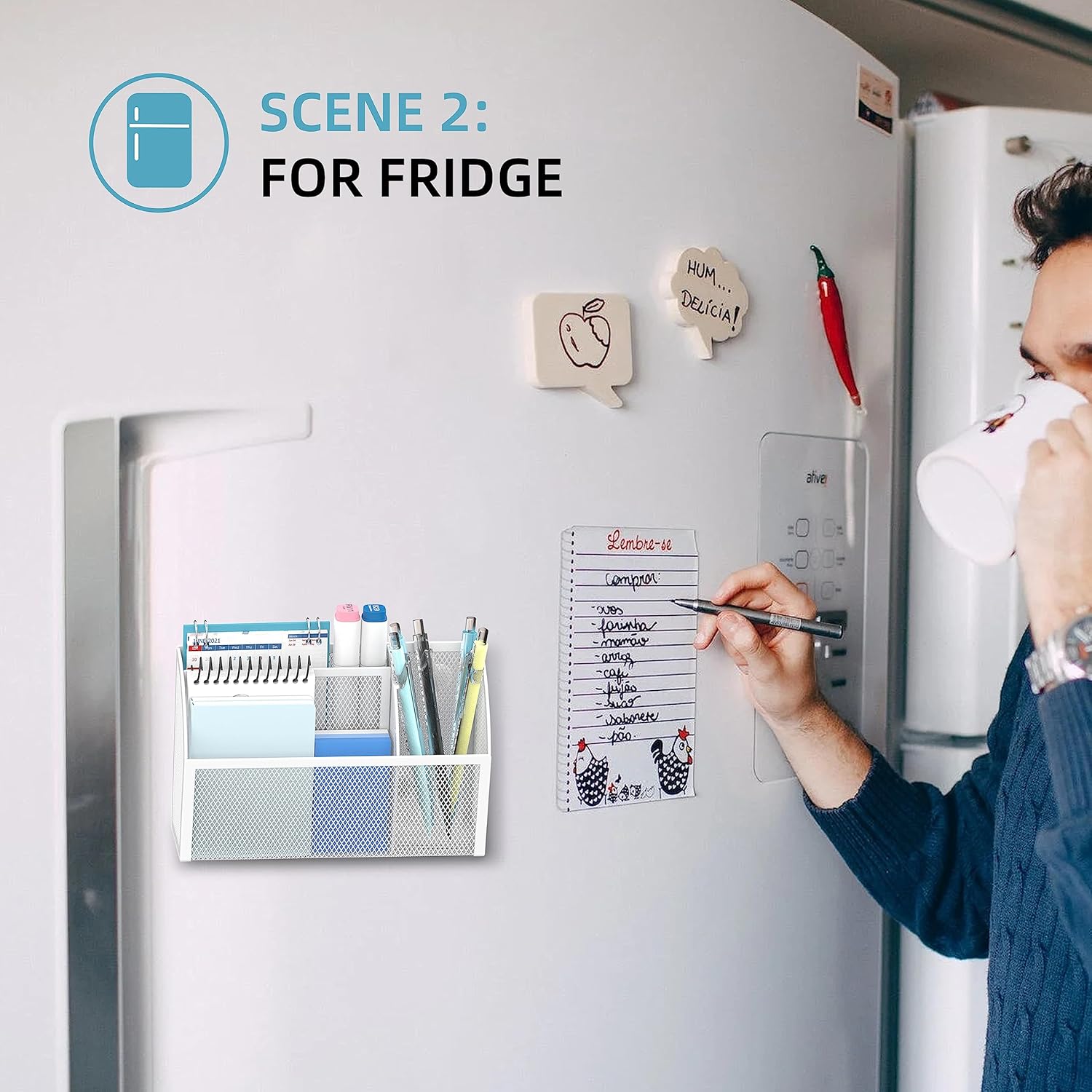 - [Multifunctional Magnetic Fridge Organizer ] This magnetic locker organizer is specially designed for various scenarios. Can be used as a magnetic pencil holder cup, magnetic marker holder, magnetic school locker organizer, or magnetic pencil holder basket. Perfect for home, kitchen, office, workplace, school, restaurant, etc.