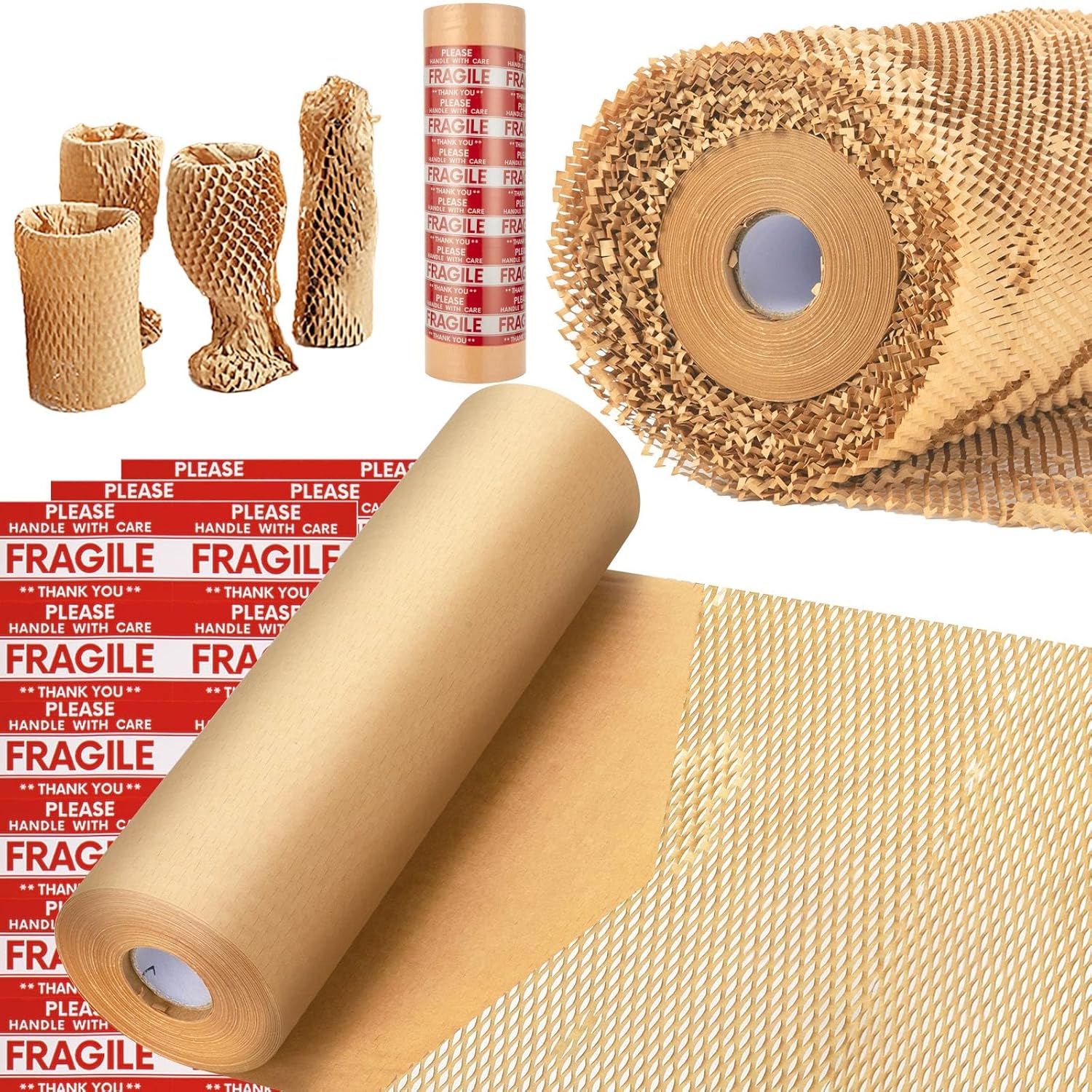 - ♻️Extra Large Honeycomb Packing Paper -- Our 15" x500' roll of paper stretches to become 15" 800', perforated to release the honeycomb structure and increase cushioning performance, and effectively protect items. Plus, our honeycomb cushioning paper is 3 inches wider than other papers, so you can pack larger items. To ensure good protection, wrap objects in several layers.