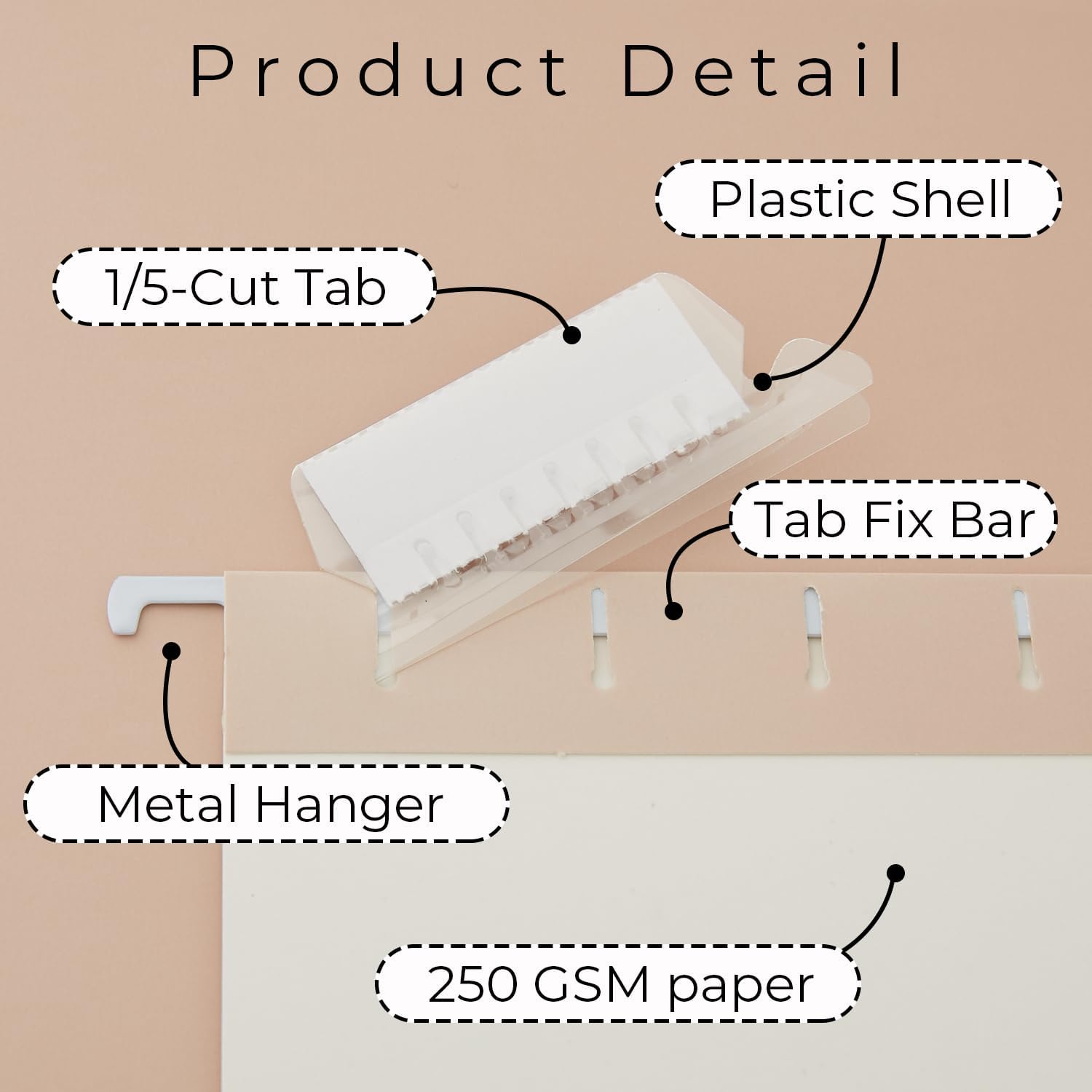 - Sorted Tabs - Each hanging folder features a 1/5-cut custom tab for hassle-free organizing and access to documents. Our pretty hanging folder can store bulky files, medical charts, or product manuals and keep files separate