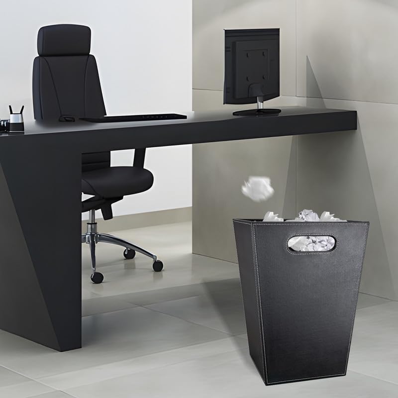 - Easy to Clean: waste basket for office is simply wipe the leather surface with a damp cloth for quick and effortless cleaning. Our wastebasket is professional design for small trash, recycling cans, paper waste and junk mail for the office, bathroom or or garbage in the kitchen.