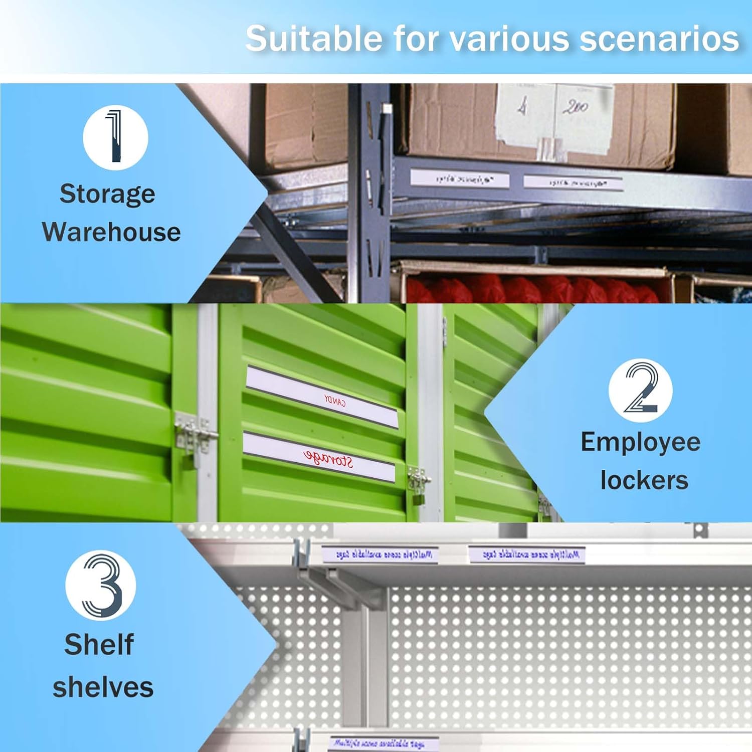 - Easy to use: write on the included paper strip, slide in the paper insert and the transparent protective film, stick the magnetic label holder to clean and flat surface, saving time and making reposition easier compared with traditional adhesive labels
