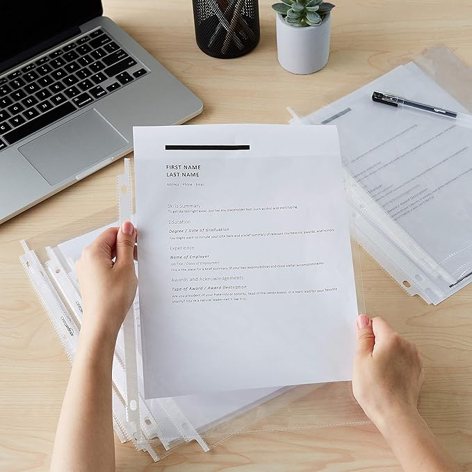 - 1200-pack of sheet protectors for organizing, storing, and protecting 8.5-by-11-inch sheets of paper
