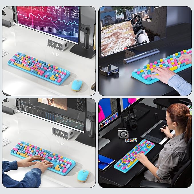 FOPETT Wireless Keyboard and Mouse Combo, 105 Keys Full-Sized 2.4 GHz Round Keycap Colorful Keyboards, USB Receiver Plug and Play, for Windows, Mac, PC, Laptop, Desktop (Blue Colorful)