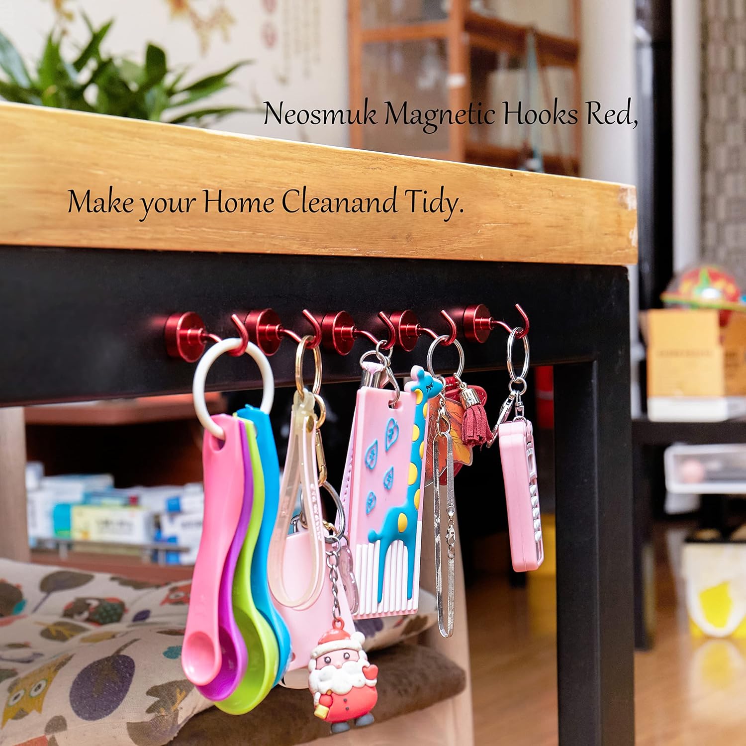 - ✔ VERSATILE USE- Neosmuk’s strong neodymium magnetic hooks were endowed with a strong capability for holding various items wherever there is iron or steel. This magnet hook is a perfect magnetic key holder. You can also hang your tools next to the toolbox with this magnetic hook. Our magnetic hooks are great for grill, pot, cup, utensils, and oven.
