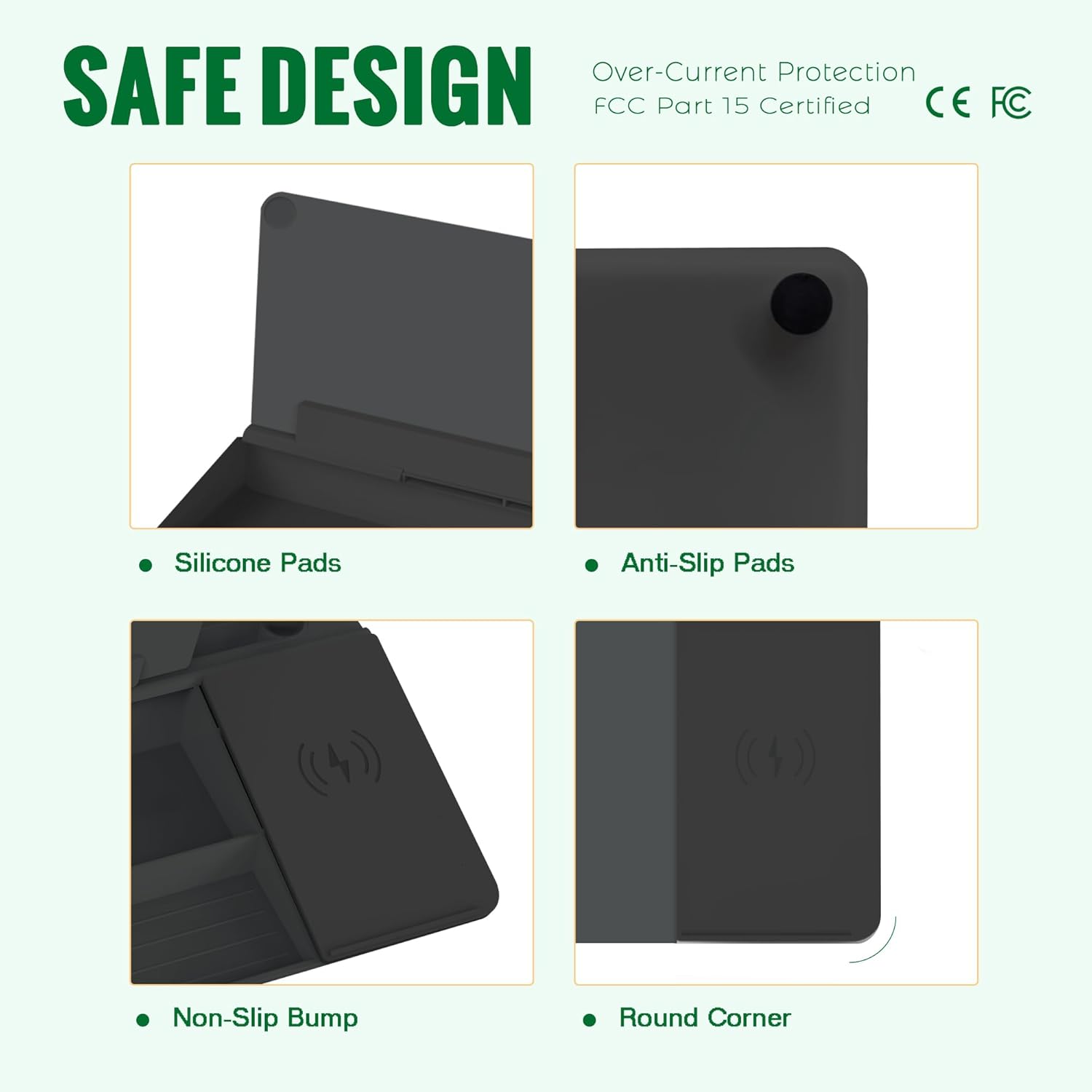 - 📳WIRELESS CHARGING: Say goodbye to tangled cords by simply laying your phone on the charging stand.Quick charging (output:max15w), safe and reliable, it is FCC part 15 Certified and have over-current protection. Notes: 1. It is best to use a ≥20w adapter for power supply; 2. Pls confirm that your phone supports wireless charging. 3. The thickness and material of the phone case will affect the charging function, for a better experience, we hope you to remove the phone case.