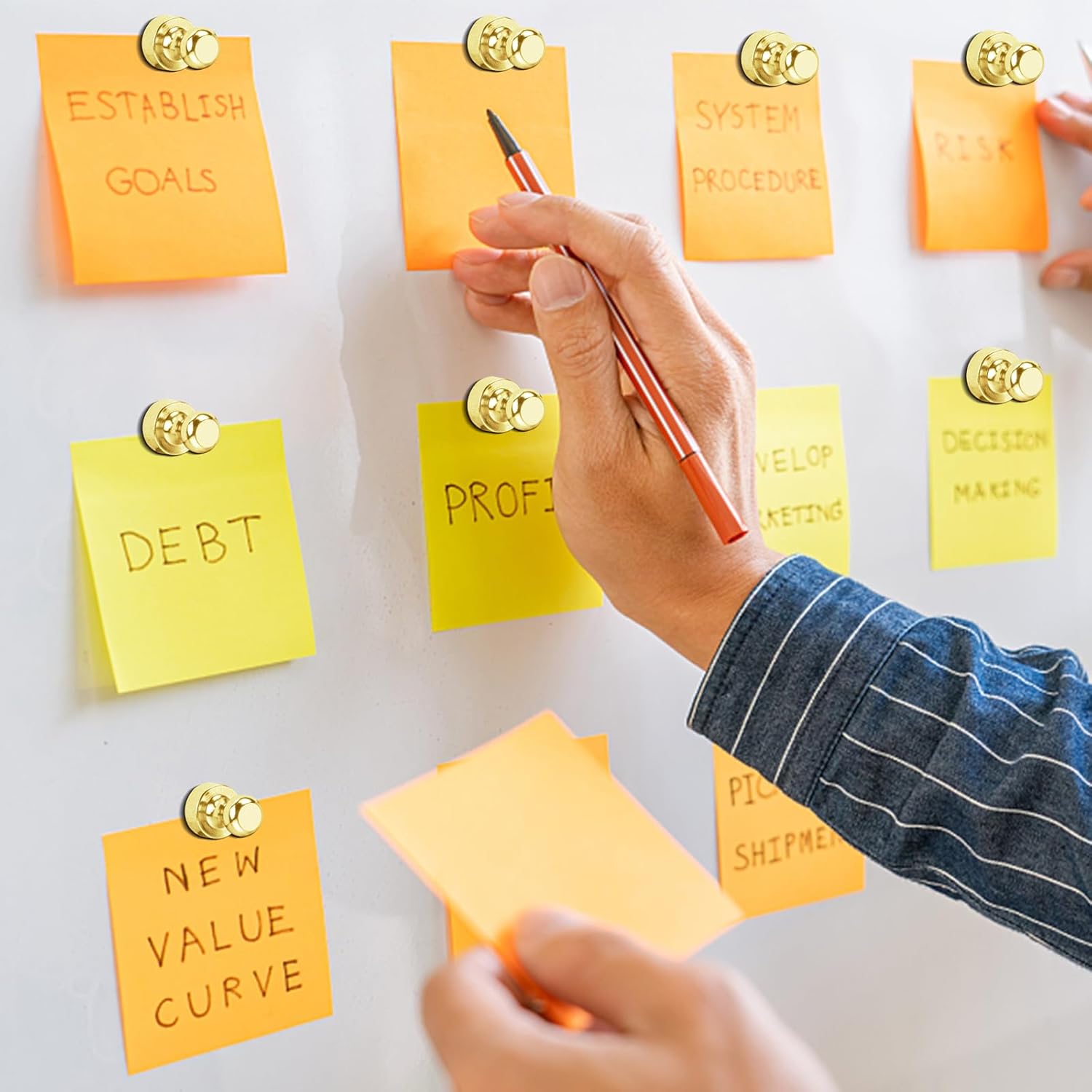 - 【Small but Strong】 - Our small gold whiteboard magnets are strong, holding up to 30 sticky notes or 15 sheets of A4 paper with just one magnet. MIKEDE's small but mighty refrigerator magnets ensure that your work, recipes, or other displays won't slide around easily. Please note that they're not suitable for use on glass magnetic boards