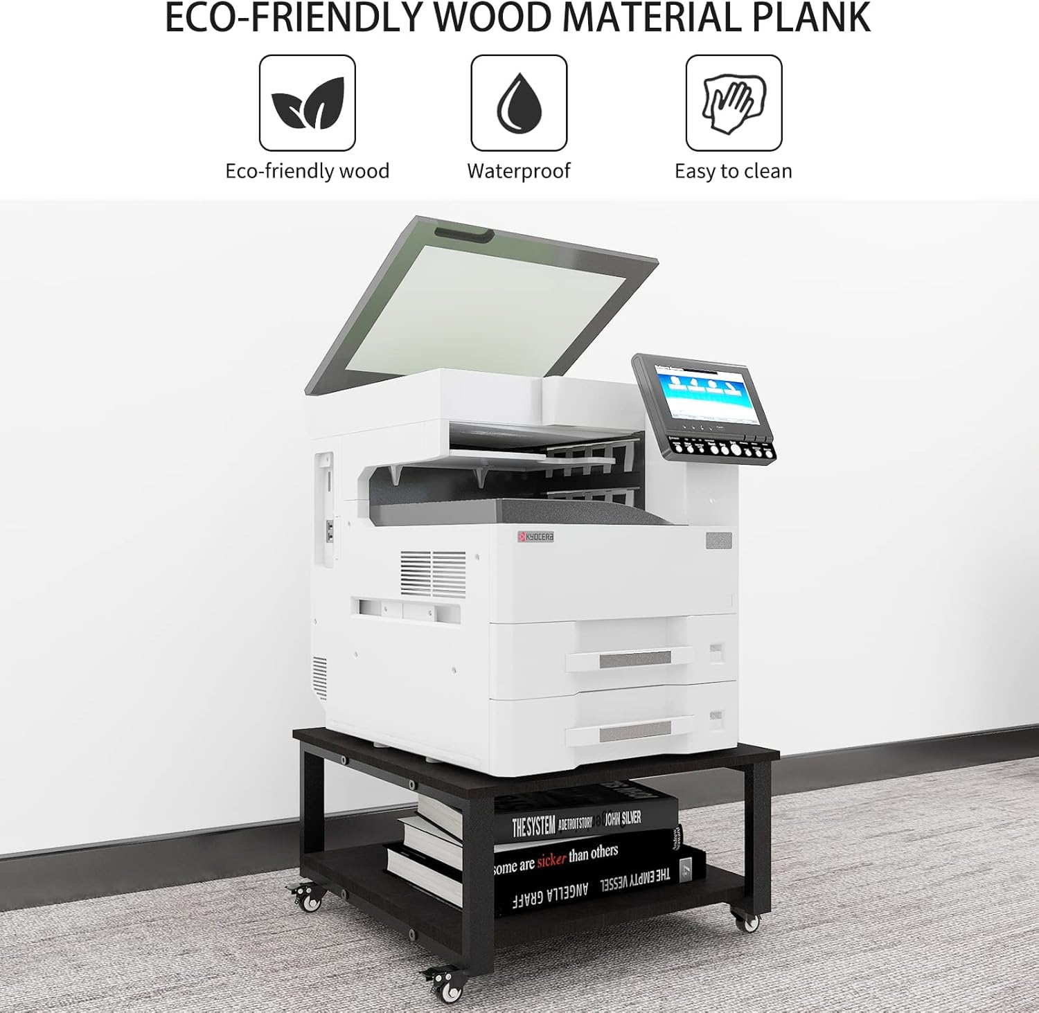 Natwind 2 Tier Laser Printer Stand,23.6''x23.6'' Large Printer Table,Copier Stand with Wheels, Heavy Duty Rolling Printer Cart with Paper Storage Shelf for Home Office (Black)