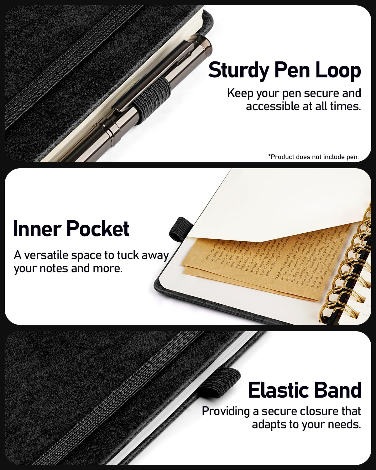 - Added Functionality: Sturdy Pen Loop, Elastic Band and Inner Pocket; Enjoy 180° Lay Flat for effortless writing, 360° Flipping for comfortable reading from any angle with spiral binding; A practical gift for family, friends, and partners