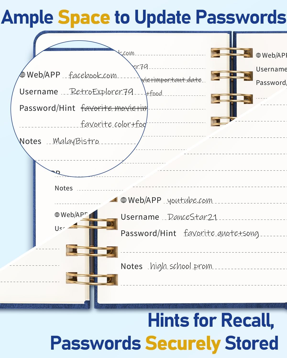 - Never Forget Passwords Again: Record 468 passwords, with space for updates; Say goodbye to password woes! Secure Pass Keeper Book keeps you covered