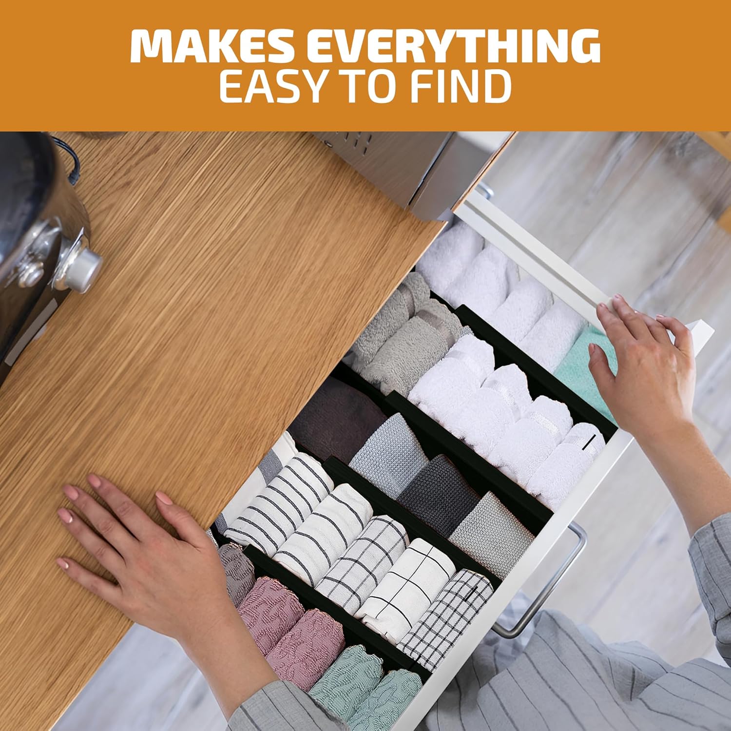 - ⚡ Easy to Use with Added Protection: Simply slide the divider into place in any kitchen, bedroom, office, or bathroom drawer. Equipped with EVA foam padding, it protects your drawers from scratches and ensures the divider stays securely in place without slipping. Achieve organized storage in seconds, with the flexibility to remove or reposition as needed.