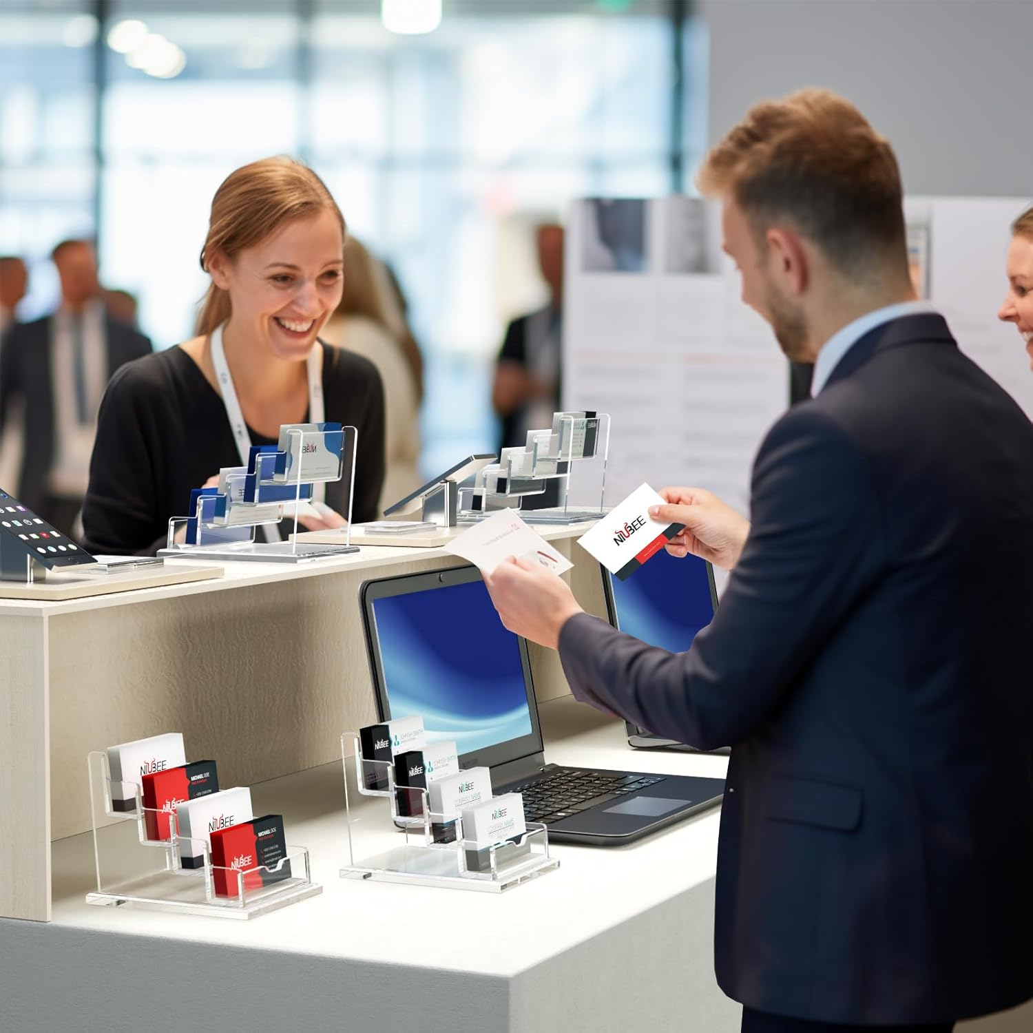 NIUBEE Clear Business Cards Holders 4 Tier Acrylic Card Holder for Business Cards, 4 Slots Business Card Display for Desk Counter, 300 Card Capacity, 1 Pack